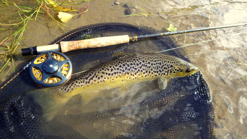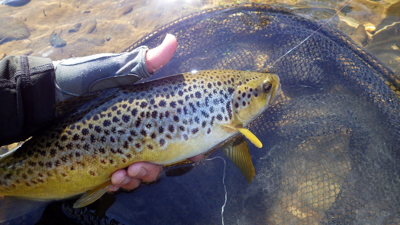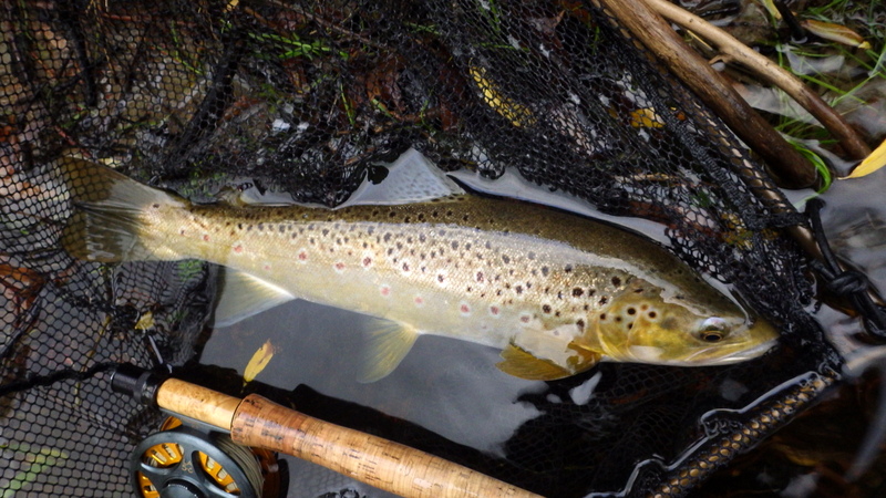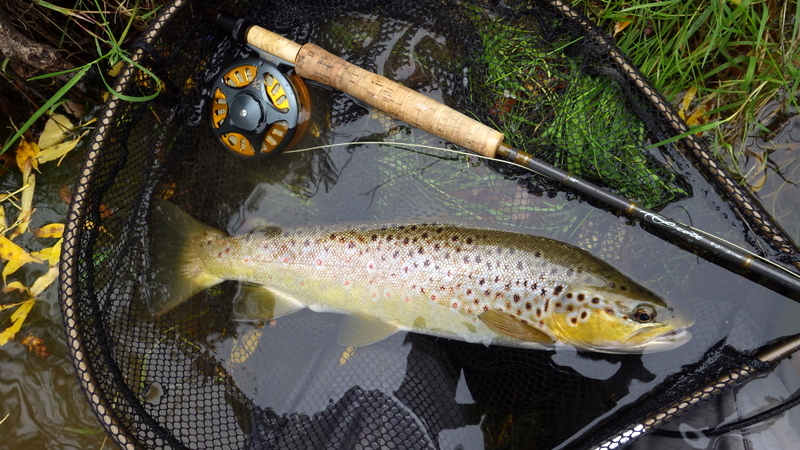 This nice autumn colour fish took a nymph in a fast run.