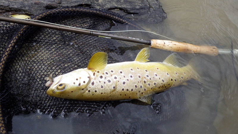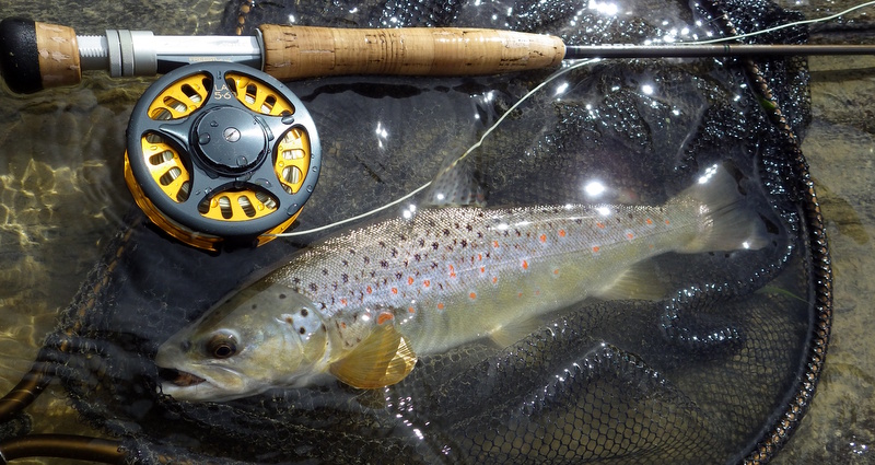 Fly Fishing 2014/11/24 Trout Stalker 今週はそろそろライズの釣りが出来るような川にも行ってみたいけど、先週の川にはまだまだ見えてるいい魚がいたからそっちも気になるしなあということで迷いましたが、結局先週と同じ川に。近いから運転も楽だし。 ダメですね、見えてる魚が居ると。どうしても気になってしまって(笑) すっかりトラウトストーカーと化しています。 また同じ川でブラウンをストーキングしてドライ&ニンフで仕留める、サイトフィッシングのみ。 水辺の木であったり 草であったり、いろいろなものに隠れながらストーキングしていきます。 これがジャスト60cm、5.5lb。 なんかあんまりいい写真が撮れてなかった。。 魚はまだまだいるけど簡単ではない。 今日は釣れそうなヤツがもういないなあ。 川を変えよう。 帰り道に寄れるもう1本の川。シーズンオープン直後に初めて南のブラウンを釣った、あの川だ。 この流れに黄色のいいブラウンを発見。 静かに下手からウェーディングして慎重にアプローチする。 1投で仕留めた!ニンフを食わせるつもりだったが、上のドライにもんどりうって「ガボッ」とバイトしてビックリ! 黄色味が強くてきれいな57cmのブラウンだ。 ドライは#10スティミュレイター。丸呑みでガッポリと食っていた。 ドライ&ニンフのドライに出たのは今シーズン初です。 ようやくそんな季節になったのかな? かなり草も高く生い茂ってきて歩きにくくなってきたぞ。 今週も2日目はまた半日釣行。 太い54cm、4.5lb。 ここは高いバンクの上からのアプローチでランディングが大変だけど、どうにか仕留めた。 これを釣る前に1本飛ばれてバラシてしまった。 今日も先週見つけたクッソデカイヤツがクルーズしていたがダメ。 チラッとフライを見には寄ってくるんだけど。。 この後、60cmくらいのヤツをランディング寸前でネットに入れそこなった。 最後の最後にプンッと肉切れで外れて、ネットの枠に魚が当たったんだけど。。 デカイブラウンはウェイトが重いから、最後の寄せで肉切れが多いかな? 気をつけなくてはいけないな。 というわけで、今週もちょっとサイズは落ちたものの、いいブラウンをキャッチできたので満足です。 ドライにガップリと出てくれたヤツもいたし、楽しかった。 釣り方はまあまあハマッている感じがする。コンスタントに毎週結果が出ていることだし。 ストーキングしていると、あっという間に半日くらいは時間が経ってしまう。 しかしデカイヤツはひと際警戒心が強く、難しいですね~。 帰りに牛に見つかってしまい。すべての牛が一斉にに突進してきた! 柵の外には出てこないとわかっていても、これだけ迫られるとさすがに恐ろしいよ(汗) やばい、退散だ~~ PR