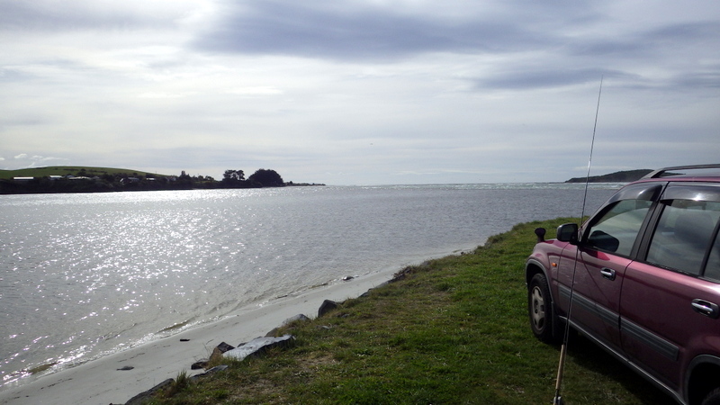 Fly Fishing 2014/09/21 The First Fish in The South 早いものでDunedinでの新しい仕事も最初の1週間が終わり、とりあえず南での初めての釣りに行ってみようってことで、近場でウィンターシーズンの釣りがOKな場所をリサーチ。 まあ川の下流域かレイクになるのは北と同じですが、いくつかありました。 Dunedinのエアポートの近くを流れる、このリージョンでも代表的な川の1つをピックアップ。 この川のリバーマウスでシーラントラウトにトライしてみることにしよう。 シーラントラウト(Sea Run Trout)とは要するにブラウントラウトの降海型のヤツだ。 釣ったことないから釣ってみたいじゃないか! 行きますっ!! ちなみにDunedinから40分のドライブで行けちゃいます。近い! シーズンは通年。ターゲットはブラウンの他にチヌークサーモンも書いてある。 どうなんだ? まったく知らない場所で、釣ったことのないターゲット。 はっきり言ってやってみないことには全くわかりません。 だだっ広いし。。(笑 ダブルハンドでいってみよう。 フライはまあ、日本の海アメの釣りあたりが若干参考になるんじゃないかと思って、S坂さんのサケ稚魚フライを参考にさせてもらったオリジナルをうちにあったマテリアルで適当に巻いてきた。 シーランは現地でホワイトベイトと呼ばれている1インチくらいのベイトフィッシュを捕食するということなので。 ちなみにこのフライ、北のレイクでもスメルトパターンの時には普通にレインボー釣れてました。 フックサイズは#6です。 今朝は8時過ぎがロータイドで、下げ止まりから潮が動き始めるタイミングで釣ってみようと思って、9時半頃にスタート。 こっちがマウス、海との出会い。 上流には橋が。 美しい場所です。素晴らしい眺め。 ライズやジャンプしている魚は全くいないようだ。つまり魚っけなし。 数人、スピンフィッシングをしているローカルのアングラーもいるけど、誰もロッドは曲がらない。 う~ん、全然釣れる気がしないなあ~。。 スタートから30分を過ぎた頃、上げの潮が動き始めて、ラインが上流に向かって流されるようになってきた。 ところどころに潮目ができたりもして、何かが起きそうな雰囲気にはなってきたけどどうなんだ?? さっきまでウーロン茶のような水色だったのが、あっという間にクリアーな海水に変わっていく。 どんどん海水が満ちてくるのがはっきりとわかる。 しかしバイトはこない。 ラインもFボディ+インターティップからインターボディ+T-3ティップに変えてみたりしながら、2時間近くネバってはみたけど、何もなし。 よし、休憩だ。 けっこう風も強くなってきたしどうするかなあ? 上げ止まりから下げていく潮で釣ったほうがいいのかなあ? そもそもこのウインターシーズンのシーランやサーモンはもうここに入ってきているのか? 9-11月くらい(春)がシーズンということらしいけど。 もうちょっと通ってみないとわかりませんね。 この川の15kmほど上流にレイクがあるので、そっちも様子は見てみたい。 よし、レイクに行ってみよう。 レイクに着くと風がビュウビュウじゃないか。。 まあまあ大きなレイクです。 フライのターゲットはやっぱりブラウンだな。 パーチやうなぎに、あと... なんだこの"Giant Kokopu"って魚は? 説明によると、これとうなぎが"native"つまり、もともといた在来種ということだ。ブラウンやパーチは"introduced"、移入種ですね。 ちなみに河口湖なんかでもよく、放流バスに対して河口湖で自然繁殖したバスをネイティブといいますが、これは正しくありません。 そこで自然繁殖したワイルドフィッシュであっても、バスはもともとそこにいた在来種ではないので"native"ではなく"introduced"です。放流か自然繁殖かという区別で言うなら、自然繁殖は"wild",ワイルドといいます。 ババ荒れだけど、とりあえずやってみよう。 そしたら、なんか4投目でいきなりヒットしたんですけどーー!! けっこう重い。。 そんなに走らないけど、下に潜るタイプのファイト。 こりゃ、ブラウンきたな。よっしゃーー よしよし、意外とすんなり浮いてきたぞ~ アレッ、なんかカラフルな魚なんですけどーー うわっ、パーチだよ、パーチ!! デカイパーチだ! なんと南島ファーストフィッシュはパーチ。 パンパンで800~900gくらいはありそう。 外道の釣れることのないNZの川、湖なのでトラウト以外の魚をNZで初めて釣った。 パーチは若い頃にカナダのレイクで釣ったことがあるけど、こんなにデカイのは初だなあ。 もう23年くらい前だ。 この魚を見たら、冬に日本に帰っていたときに釣った多摩スモを思い出した。 プリスポーンのブリブリのヤツだ。 多摩スモ 2014年2月 Perch 21/09/2014 New Zealand なんか似てる気がするけど、そうでもないか? パーチは尾っぽの付け根が細いから、あんまり引きが強くないんじゃないだろうか? 背ビレはバカデカイけどね。 引きの強い魚は尾の付け根にパワーがある気がする。 やっぱり多摩スモのほうがガッチリ筋肉質でカッコイイな。 この後