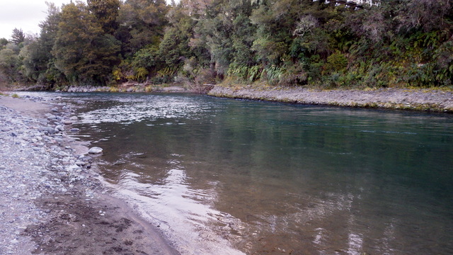 Fly Fishing 2014/09/08 Enjoying The North Rainbows 3日目、今回の釣行最終日。 昨日いい釣りが出来たので、気持ち的にはずいぶん楽だ。 まずは早朝のTongariro本流勝負をもう一度、1時間半ほどやってから、昨日サイトで2本いい魚を仕留めたあのスポットにはまだ魚がいたので、あそこだけやるためにあの川にまた行こう。 その後は昨日の2本目の川を今日は時間をかけて、もう少し上流まで釣ってみよう。 昨日のつり橋下のプールよりもう少し下のプール。 ホントは上流に歩いてから釣ろうかとも思ったけど、カーパークで準備中に地元のKiwiアングラー.たちがバァーっと車で乗り付けて、先につり橋を渡っていったので上はあきらめた。 こっちもいい感じのポイントだけどバイト無し。 昨日の夕暮れに釣ったプールも不発だ。 予定通り90分ほどで切り上げて次の川、あのスポットへ。 やりたいのはあのスポットのみだし、見える魚もいないのでほとんどキャストせずにどんどん上がります。 ところがまだ途中の、とあるプールに一匹浮いているのを発見。魚は上流を向いていて、10mくらい手前で発見したのでスプークはされていない。 チャンスだ。 オーバーハングの枝が広く張り出しているので下流からは狙えない。 慎重に魚の斜め左後ろにポジションを取って、アプローチ開始。 しばらくすると他にも数本、ボトム付近で蠢いているのが見える。 昨日はいなかったけど、今日は魚たまっているな、ココ。 最初に見えていたヤツは反応しないので、流すレーンを変えてボトムに張り付いているヤツを狙ってみる。 48cmのいいヤツが反応。 昨日3本落としたので、今日は主導権を取られないように強気のファイトでランディング。 最初に浮いていたレッドバンドのオスも食わせたけど、しっかりフッキングしなかった。 再びボトムまでグッとニンフを沈め込んで、 もう1発。50cmくらいのナイスコンディション。 よーし、今日も幸先良く2本捕った。 ここで1時間くらい費やして、目指すスポットへ。 到着すると、 アレ、魚見えない。 昨日は軽く10匹以上いたのに。釣り残しがまだまだいたはずだが... 自分が見えていないだけということもあるので、しばらくニンフを流しながらずっと観察してみるもののやっぱりいない。 1日で魚が動いてしまったのか? あきらめて引き返します。 よし、またもう1本の川に行こう。 昨日、この川の1本目が出たのと同じスポットから今日も! 昨日よりずっといいサイズ。 3lb、50cmのレインボウでした。 ん~~、楽しい~~ 昨日よりもっと上流まで釣り上がってみよう。 水深のあるブラインドで出るべきスポットはなぜか不発。 なので、今日はこの川でもサイトフィッシングがメインになる。 まあまあのサイズを4本追加することができた。 帰りに対岸から川を上がってエントリーポイントまで戻ったら、車3台くらい止まってた。 なるほど、きっと誰かが釣った後だったんだな。 結局今日も2本の川でトータル7本。 うん、上出来、上出来。 冬だしね(笑) 北島最後のTaupo釣行が終了です。 一日目ノーフィッシュ、2、3日目は各7本のトータル14本キャッチ。 やはり低水位、低水温の澄んだ川は厳しかったけど、けっこういい釣りが出来た気がする。 Tongariroでも1本だけだけどツーハンドのウエットで釣ったし、何よりサイトフッシングはエキサイティングで楽しかった。 数も3日で2桁いければいいと思っていたけど、それ以上の釣果で満足。 今回釣った2本の小さめの川は、ドライフライシーズンにも是非釣ってみたい。 いつかまた来よう。 やはりGreat Lake Taupoは素晴らしい! 北島のレインボウ最高!! よーし、帰ろう。