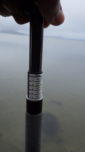 デカイブラウンとのファイトはとにかく持久戦。アクロバティックなレインボーと違ってそんなに走ったり跳ねたりしないけど、とにかく浮いてこない。川だと ブッシュとかに突っ込まれることも考えてファイトする必要があるけど、オープンウォーターのレイクはゆっくりやり取りすればいい。自分の焦りだけが禁物。 早く姿を確認したくて逸るとミスる。