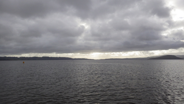 Lake Rotorua は面積79sqkmで、北海道の屈斜路湖や支笏湖と同じくらいのビッグレイク。ちょうど写真中央の奥、かなたの光が指しているコーナーがさっきまでいたチャンネルのエリア。風裏の西岸からはNEのチャンネルの荒れ具合は全く伺い知ることが出来ないほど。