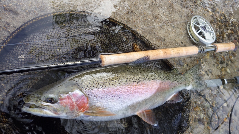 昨日5本、今日も5本すべて同じタックル。このSAGE SPEY ONE、3ヶ月くらい前に新調したばかりなのに、もうかなり釣ったなあ~。30本以上は釣ったはず。しかも入魂のファーストフィッシュが自己ベストのブラウン、8lb、73cmだったし、自己ベストのレインボー、7.5lb、67cmも先月このロッドで釣った。ツキもありそう。