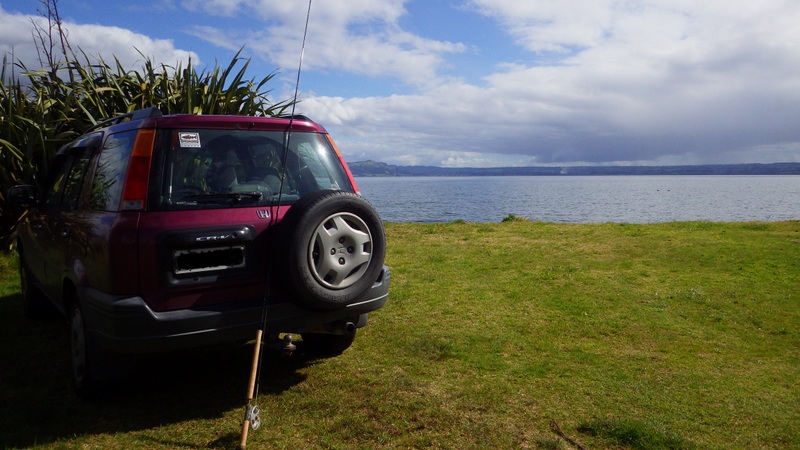 Fly Fishing 2013/09/18 Lake Rotorua Rainbows 今週も日曜日はRotoruaのレイク釣行でした。 スタートから2投目で1発目が3.5lbのメス。 その後約3時間で4lb、4lb、5.5lbと型揃いで4本のレインボーをキャッチ。 この2本目の4lb、55cmは3回、4回と派手にジャンプを繰り返して超元気でした。黒点がほとんどなく、背のシルバーグレーと頬、腹側のヒレのオレンジ色のコントラストが美しい魚体のjack(オス)。 3本目の4lb、オス。 そんなにでかいのは出ませんでしたが、それでもこの最大の5.5lbのメスは61cmあって、強烈なファイターでした。 このほかにもフロロ8lbのティペットを切られたのが1回、途中でフックアウトしたのが1回、ショートバイトでのらなかったのが2回とこの1スポットだけで全部で8バイト。 木曜日に38mmのまとまった降雨があって、このレイクも少し増水。新たな魚がこのスポットに入ってきて、状況は好転したように感じました。 愛車HONDA CR-V 1996年モデル。日本ではもうほとんど見かけないだろうけど、NZの中古市場では人気車です。去年の9月末にウルグアイ人の夫婦から購入してちょうど1年。すでに26000kmも走っちゃいました!オドメーターは218000km超えましたが、それでもいたって快調。10月に解禁になる2013-2014シーズンもがんばってもらわなくては(笑)