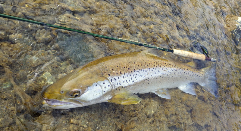 Fly Fishing 2015/10/06 New Season Kick-off! いよいよ始まりました~ 新しい2015-2016シーズン!! 今年は去年より南方面の川の水位が低く、10月1日に釣りに行けたアングラーは釣りになった様子。自分は10月4日の日曜日まで待たなくてはならず、川の水位をウォッチングしながらもどかしい3日間を過ごした。 そして残念ながら、日曜日は風速100km/h越えの恐ろしい強風が吹く予報。 日本では風速はm/sでいいますが、こっちではkm/hなんです。たぶんm/sにすると風速20-25m程度と同じかと思います。 初めは日曜日はDunedinより南方面の川に行って、月曜日は近場の北方面への釣行を考えていましたが、この分だと日曜日は行っても風で釣りにならないかもしれない。なのでいろいろ考えた結果、ガソリンが無駄にならないように逆に日曜日は近場の北方面に様子見で行って、月曜日に南に向かって本当の解禁って感じにしてみようということに。 そしてやって来ました日曜日。 川に到着した段階ではまだそこまでの風ではなく、初めの1時間くらいは釣りが出来た。 しかし去年より見える魚が全然少ない。 1匹見つけただけ。 そうこうしているうちに、予報どおりに風が強くなってきて。。 きた~~、とんでもない強風。 自分が立っているのも大変なくらい。 何もそんなに予報どおりに吹かなくても。。 退散してもう1本別の川に。 こっちでも状況は同じ。 風が収まる気配はない。 ダメだこりゃ。。 釣りに行ったら、どんなにタフな日であってもあまり早上がりとかしないタイプなんですが、さすがに今日はムリ。 午後2時で終了。 明日、明日。 明日南へ行こう。 ところがこの日の晩に南のリバーフローをチェックすると、なんと無情にも水位が急上昇。 Mataura Riverでも70cumecs以下だったのが一気に90cumecs近くまで上がっているじゃないか!! Dunedinは風は酷かったけど、天気は良かった。 南は風プラス雨だったのか? こうなると南方面の川はすべてあやしい。コレは去年の教訓。 なんだよ~、まいったなあ~~ こりゃ自分の解禁は来週末かい?(涙) 夜通し風が吹き荒れていて、もう準備もろくにせずにふて寝です。 翌月曜日の朝。 仕事に行くぐらいの時間にゆっくり起きると風は収まっていて天気も良い。 ん~~、これなら行きたいなあ。。 でも南の川は濁っている可能性が高いからなあ。 昨日見た北方面の川にもう1度出直す?? でも魚あんまりいなかったしなあ。。 昨日行った2本の川よりさらに北に、昨シーズン中に行こう行こうと思いながら、結局行かずに終わってしまった気になっている川が1本ある。 天気もいいことだし、ダメもとでもいいからドライブがてらその川でも見に行ってみるか? 今後のために見ておくのは無駄にはならないだろう。 よし、今日のプラン決定です。 Dunedinから1時間強。大した距離じゃないです。 10時くらいに到着。初めての川だけど、すぐに川へのアクセスも見つかった。 けっこうクリアーな水の、広い河原のいい感じの流れだ。 よしよし、穏やかで天気もいいし、気分も上がってきたぞー。 まずは常套手段のドライ&ニンフから。 #12アダムスパラシュートに約70cmのドロッパー。ニンフは#12フェザントテイルをセットアップ。 今シーズンのニューギア、NAUTILUS FWX5/6も満を持しての実戦投入。 今年6月に日本に帰国した際に、LOOP to LOOPさんのショーケースにひっそりたたずんでいたのを拉致ってきました。店主のY田さんいわく、ずいぶん前に仕入れたものということでしたが、ふとショーケースに目をやった時に「NZに連れて帰ってくれ~、仕事をさせてくれ~」って訴えていたようだったので(笑) 今日からしっかり仕事してもらいますから。 まあ昨日もちょっとだけやったけど、いよいよ今日がホントのスタートだ! エントリーポイントのすぐ上にあるドロップオフ。レイダウンがらみの対岸よりの深みはいかにもといった雰囲気たっぷり。 まずはここからだなあ。 絶対魚が着いていそうなスポットだ。 少し下の方から流し始めて、7~8投目で本命と思われるレイダウンの横を流す。 すると。。 ドライが水中に引き込まれた! きたっ!! やっぱりいたっ!! しかもデカイ! ニューシーズンのファーストフィッシュ!! いきなり6lb、65cm。ハンプバックがカッコイイ、ナイスジャック! この川いい魚いるじゃない。 よっしゃー、いいスタートだあ!! よし次。 浅いランの川底もストーキングしながら遡行していきますが、魚の姿は見えない。 今日はたぶんさっき釣れたような落ち込み下の深みだろう。 こういうタイプのスポットを重点的に攻めていく。 それでもいないところにはいない。 落ち込み下の深みであっても、流れがありすぎるところはダメな気がする。 十分な深さがあって、かつ流れがゆるいところ。 そういう条件を満たすスポットはそんなに多くはないけれど、頑張って距離を歩いて、そういう場所に出くわすと、 やっぱり答えが返ってくる。そんな感じ。 この日2本目は4lb、56cmのヘン。 ニンフは昨シーズン中に考案して、シー