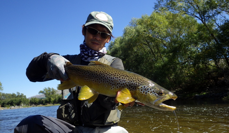 Fly Fishing 2016/01/25 Interesting Facts about River Brownies なんだか日本は異常低温で、恐ろしく寒いようですね... みなさん、体調管理には気を付けてください。 こちらNZ南島はといえば、ホリデー中はほぼずっと晴天に恵まれていたものの、仕事に戻ってからはすっきりしない天気の日が多く、どうやら去年ほどのビューティフルサマーではないようです。 先週は、今シーズンのスタート直後にいい釣りをした川に行ってみた。オープニングから初めの2週良かった川ですね。 この川は思ったより早く水が低くなってしまって、しばらく行っていなかったのですが、久しぶりに少し水位が回復したようなので様子見ですね。 見える魚はほとんど居ませんでしたが、常に魚がいるプールで唯一、岸際をゆっくりクルーズしていたヤツをしとめることが出来ました。 けっこうデカくて66cmあったんですが、細めなのでウェイトは6lbですね。 口の周りが、かなり岩にこすり付けたような痕があって、一度誰かに釣られたような魚ですね。デカイわりにはそれほど引かなかったし。 居ればでかいけど、魚の数多くない川。やはりアーリーシーズンリバーかな、ここは。 今週日曜日は、今シーズンは開幕からイマイチパッとしないホームリバーへ。 ここのところ水位がほぼミニマムまで下がりきっていたが最近の雨で少し水位が上がった。 これで少し状況が好天したことを期待しよう。 10月末に折れたSAGE VXPがようやく戻ってきた。年末年始を挿んだので3ヶ月かかりました。 ファーストフィッシュ! これで折れて新しくなったセカンドピースに入魂です(笑) 3lb半程度のいいサイズ。こんないいブラウンで入魂してもらえて、幸せな2ndピースだと思う。 最近、夕方しか釣れないホームリバーだったけど、今日はまあまあ早めの時間に釣れた。 やはり少し増水して良くなったか? 次のスポットでもすぐにフィッシュオン! またいいサイズのジャック。 これは4lbいきましたね。55cm。 この魚も背中にティペットが擦れたような痕があって、おそらく過去に釣られてますね。 全然走らなかった。 そして再びVXPが絞り込まれる! 今日は久しぶりに、去年良くて本来釣れるはずなのに今年は沈黙し続けていた場所、そういう要のスポットから1箇所1匹ずつではあるけど、いいサイズの魚が食ってくる。 また綺麗なジャックだ。けっこうでかい。 いい色してますね。4.5lbで59cm。 やはり増水で川のコンディションが良くなった気がする。 ところで去年このスポットでこの魚によく似たブラウンを釣った。 今回のヤツはすごくキレイな魚体だったので、初めは気が付かなかったんですが、ちょっと気になって、じっくり写真を見て検証してみました。 これが2015年3月15日に釣った時の写真。 やっぱり同じ魚ですね。右目のすぐ後ろ、斜めに一直線上に並んだ4つの星や、模様の特徴的な部分をいくつかブロック分けして見れば一目瞭然ですね。 そして、実はこの魚を約2週間後の3月29日にもう一度釣っています。 これですね。もともと細身の魚ですが、2回目はかなりスキニーでした。 そして今回が2016年1月24日。約10ヶ月ぶりの再会ww この場所はちょっとした大場所なので、水位によってポジショニングが変わるんですが、大きなくくりでいえば3回とも同じポイント。今回は夏なのでガンガン流れの中に入っていました。 去年は57cmで、今回59cmになっていた。今回は細身ながらもコンディションが良くなっていたので初めは同じ魚だとは思わなかったなあ。 でもあれからしっかりエサを食って少し太って、10ヶ月で2cm成長して、まだこんなキレイな魚体でいるのを確認できたのはうれしいですね。 キャッチ&リリースに関しては、やはり魚の取り扱いがすべてだと思います。いつも魚はできるだけ水から上げないで撮影するのと、いいのが釣れた時は魚持ち写真を撮りますけど、SIMMSのサングローブはすぐ乾くので、魚をホールドする前に完全に水に浸けてしまいます。素手だと魚が暴れた時にツルンと滑って、魚を石の上に落としてしまったりするリスクが増えると思います。ブラウンはけっこうヌメリが強いですからね。 9000km離れた北半球からやって来た日本人に3回釣られたブラウンです(笑) そういえば今日の1匹目も、去年同じ場所で似たようななブラウン釣ったなあ。。 こっちもチェックしてみよう。 これが今日の1匹目の54cmですよね。 2015年3月15日に釣った52cm。夕暮れ時に釣ったので光が少ないですが、これもやっぱり同じ魚だ。体側の真ん中辺りから後半の、側線上に6個並んでいる朱点が全く同じ。エラ蓋上の少ない黒点の配置も全く同じ。 つまり今日(2016年1月24日)の1匹目と3匹目は、両方とも去年の3月15日に釣ってた魚で、それぞれ2cm成長していました。 こうなると、前回の記事に書いた夏休みの最終日に釣ったキレイな魚も気になってきた。 キレイだけど背中にティペットが擦れて黒くなった古傷があったのだ。 あのスポットでも去年たしかいいのが出ているが