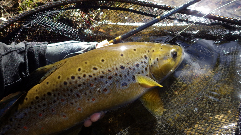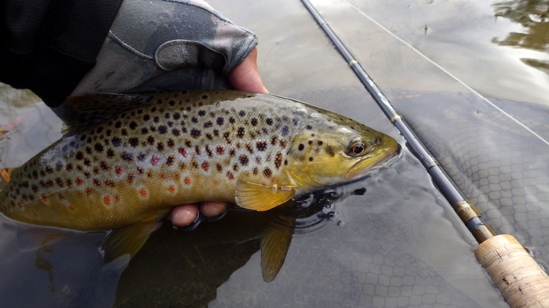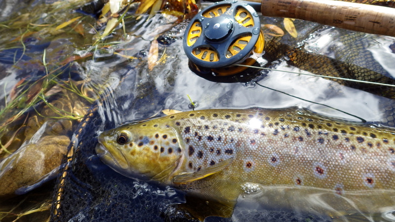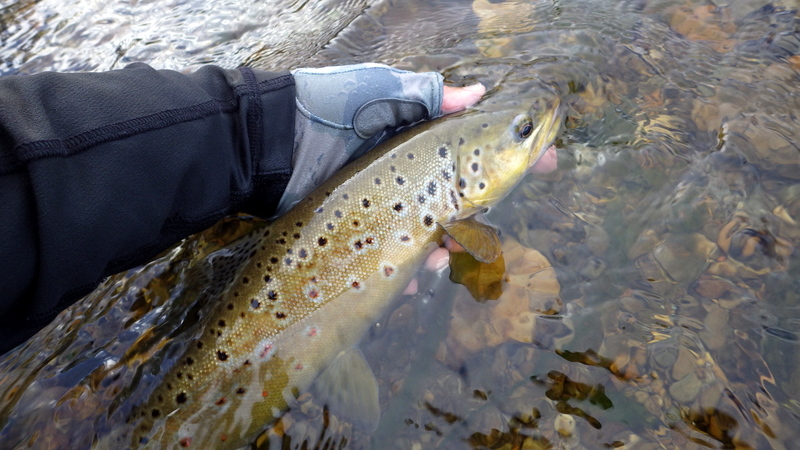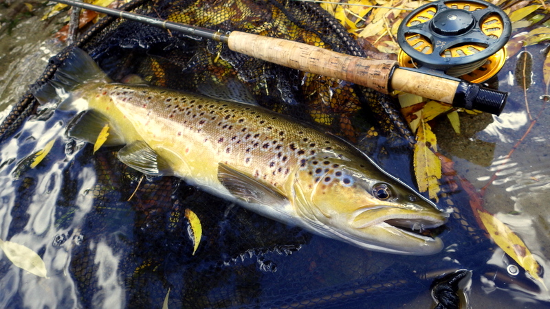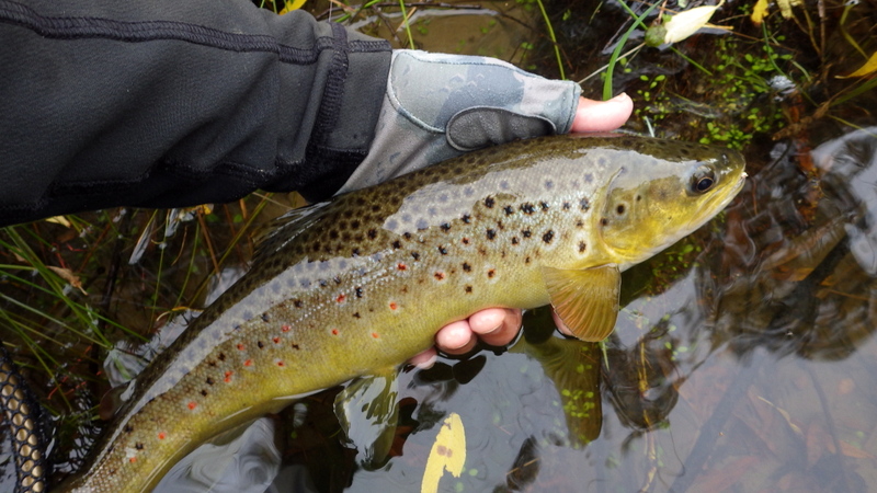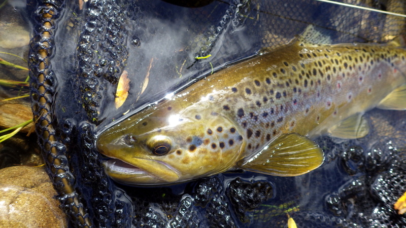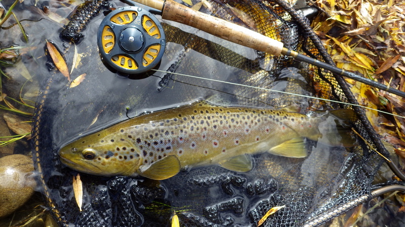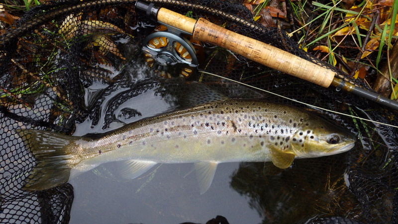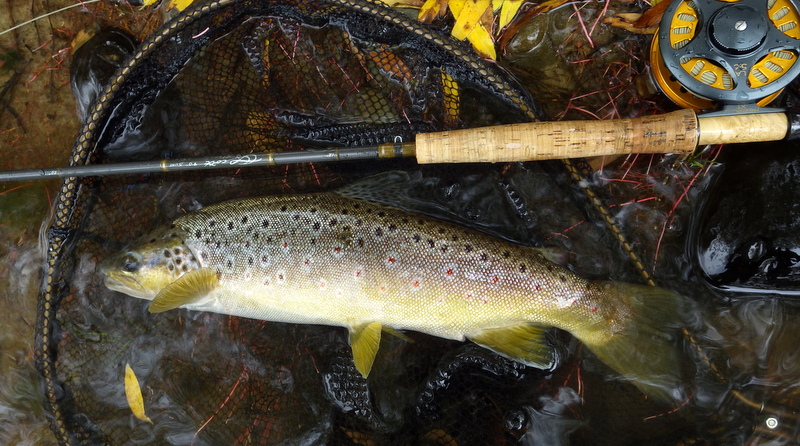 This nice autumn colour fish took a nymph in a fast run.