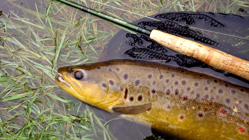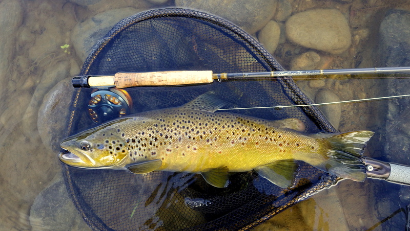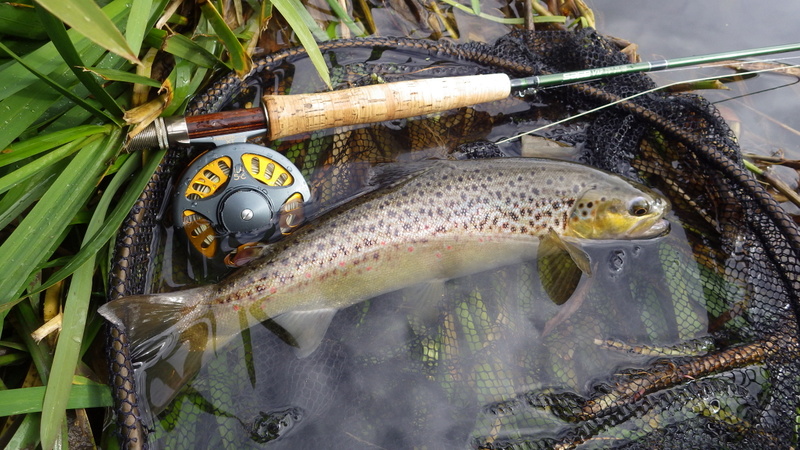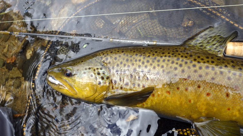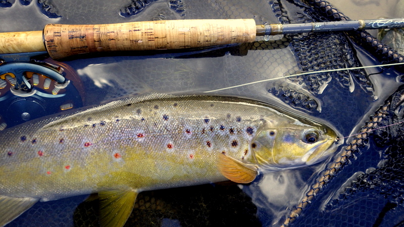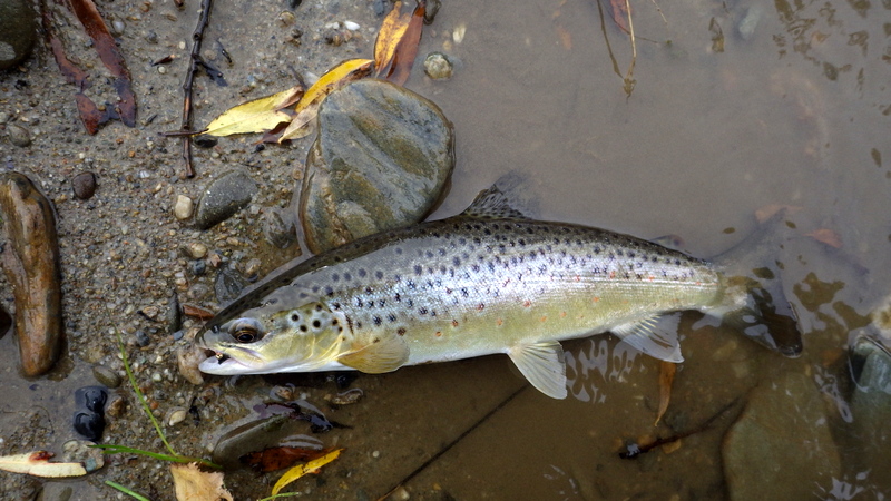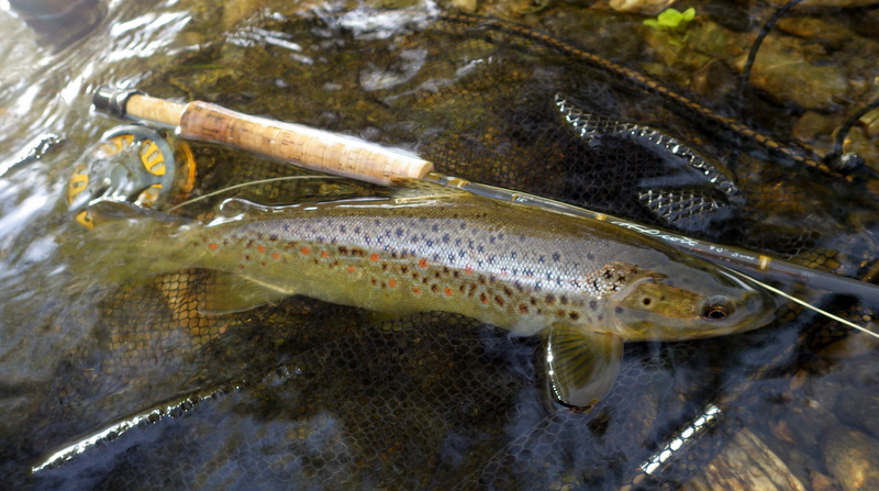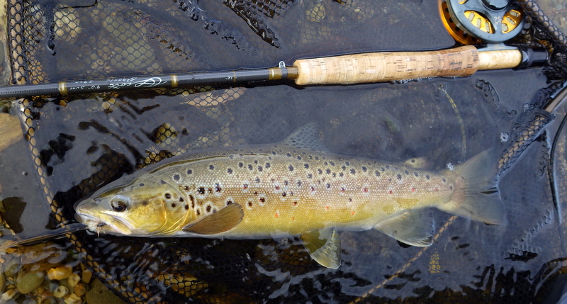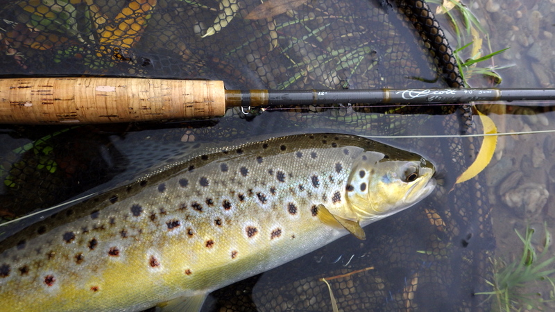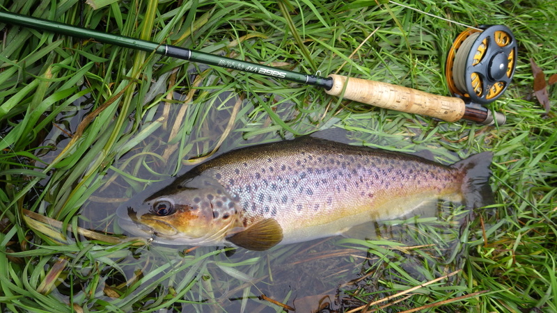 This nice autumn colour fish took a nymph in a fast run.