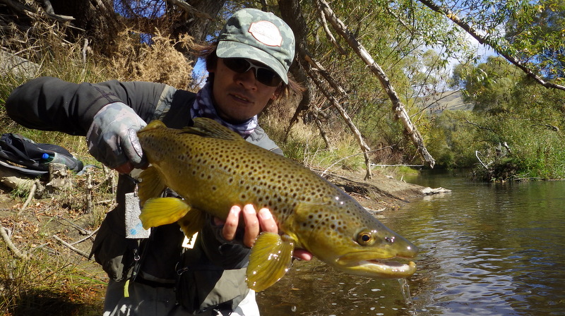 I caught five fish today and found that the size of the fish was smaller in avarage than that of at my home river but also this was a nice fly fishing river. I will come back here in the next season.