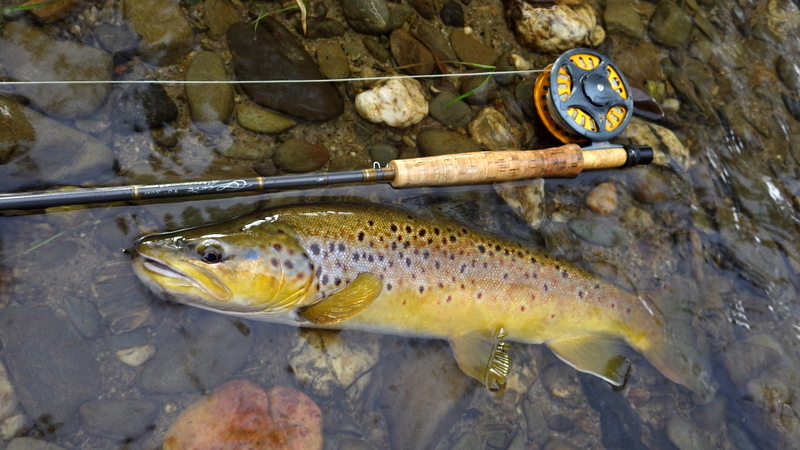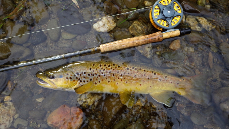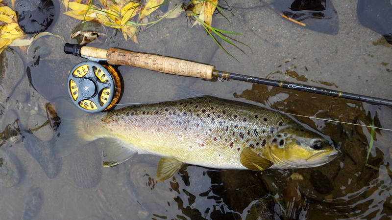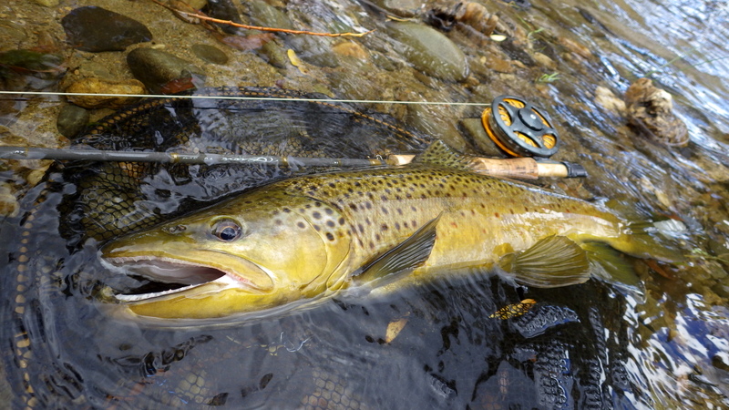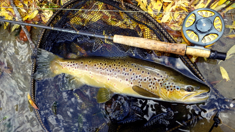このキレイな秋色の魚は速い流れでニンフを取った。