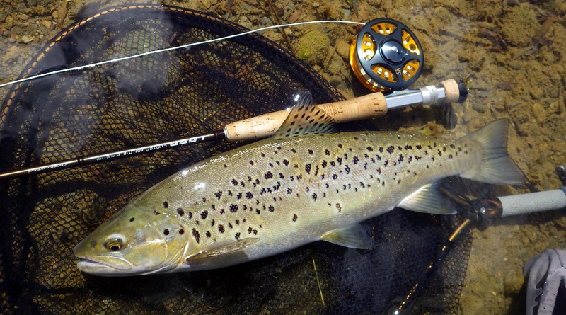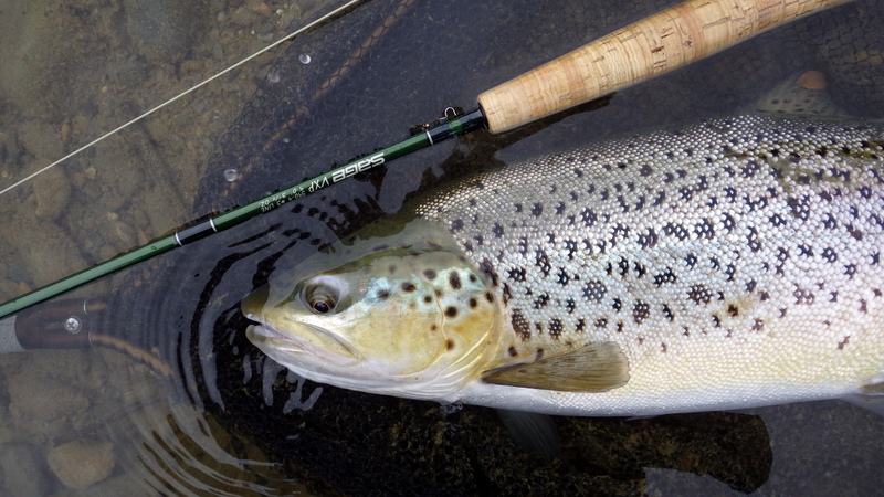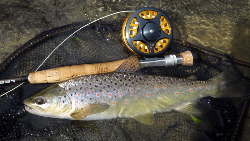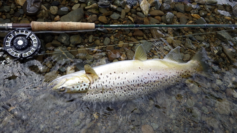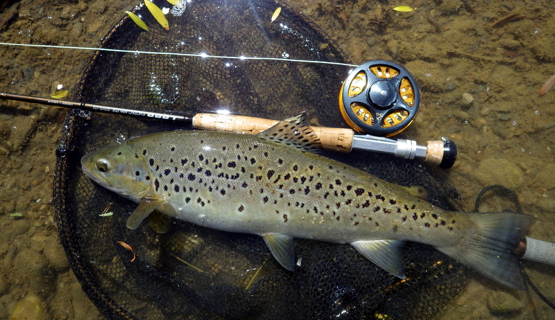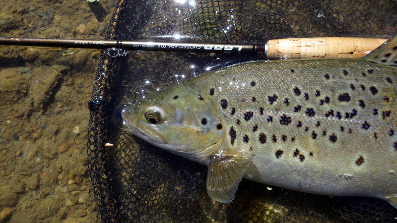 Fly Fishing 2014/11/24 Trout Stalker 今週はそろそろライズの釣りが出来るような川にも行ってみたいけど、先週の川にはまだまだ見えてるいい魚がいたからそっちも気になるしなあということで迷いましたが、結局先週と同じ川に。近いから運転も楽だし。 ダメですね、見えてる魚が居ると。どうしても気になってしまって(笑) すっかりトラウトストーカーと化しています。 また同じ川でブラウンをストーキングしてドライ&ニンフで仕留める、サイトフィッシングのみ。 水辺の木であったり 草であったり、いろいろなものに隠れながらストーキングしていきます。 これがジャスト60cm、5.5lb。 なんかあんまりいい写真が撮れてなかった。。 魚はまだまだいるけど簡単ではない。 今日は釣れそうなヤツがもういないなあ。 川を変えよう。 帰り道に寄れるもう1本の川。シーズンオープン直後に初めて南のブラウンを釣った、あの川だ。 この流れに黄色のいいブラウンを発見。 静かに下手からウェーディングして慎重にアプローチする。 1投で仕留めた!ニンフを食わせるつもりだったが、上のドライにもんどりうって「ガボッ」とバイトしてビックリ! 黄色味が強くてきれいな57cmのブラウンだ。 ドライは#10スティミュレイター。丸呑みでガッポリと食っていた。 ドライ&ニンフのドライに出たのは今シーズン初です。 ようやくそんな季節になったのかな? かなり草も高く生い茂ってきて歩きにくくなってきたぞ。 今週も2日目はまた半日釣行。 太い54cm、4.5lb。 ここは高いバンクの上からのアプローチでランディングが大変だけど、どうにか仕留めた。 これを釣る前に1本飛ばれてバラシてしまった。 今日も先週見つけたクッソデカイヤツがクルーズしていたがダメ。 チラッとフライを見には寄ってくるんだけど。。 この後、60cmくらいのヤツをランディング寸前でネットに入れそこなった。 最後の最後にプンッと肉切れで外れて、ネットの枠に魚が当たったんだけど。。 デカイブラウンはウェイトが重いから、最後の寄せで肉切れが多いかな? 気をつけなくてはいけないな。 というわけで、今週もちょっとサイズは落ちたものの、いいブラウンをキャッチできたので満足です。 ドライにガップリと出てくれたヤツもいたし、楽しかった。 釣り方はまあまあハマッている感じがする。コンスタントに毎週結果が出ていることだし。 ストーキングしていると、あっという間に半日くらいは時間が経ってしまう。 しかしデカイヤツはひと際警戒心が強く、難しいですね~。 帰りに牛に見つかってしまい。すべての牛が一斉にに突進してきた! 柵の外には出てこないとわかっていても、これだけ迫られるとさすがに恐ろしいよ(汗) やばい、退散だ~~ PR