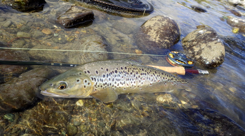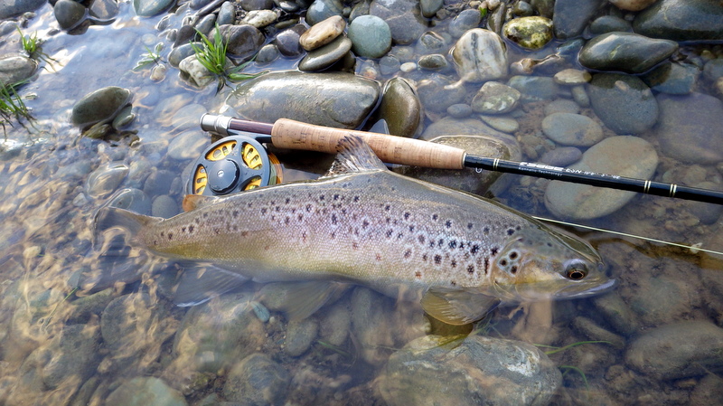 Fly Fishing 2016/04/27 Season 2015-2016 Ends しばらく更新していなかった間に今シーズンもラストの週末になってしまった。 今年の秋は降雨量が少なく、ほとんどの川がローフローのままシーズンを終えようとしています。 ホームリバーもいまだに夏の渇水期と変わらない水量のままで、まあそれなりには釣れるものの、何だかパッとしまわないまま今年は終わってしまった。 それでも秋のホームリバーはやはり美しい。 こんな状況の中、この秋にはまっていたのがSAGE ESNを使ったドライフライの釣り。 自分のESNは最高番手の5wt、5100-4ですが、そのネーミングの通り、チェコニンフに代表されるようなEuropean Style Nymphingのためにデザインされたこのロッドでなぜドライフライなのか? それはこの10ftという長いレングスがいいんです。 プラス1ftのエクストラリーチがメンディングを容易にしてくれるし、このロッドの"supple"なティップがファインティペットをよくプロテクトしてくれるので、繊細な釣りに向いているのだ。 そんなこのロッドの特性が最も発揮されるのがズバリこの川、 かの有名なMataura River! 秋のMatauraはメイフライパターンのドライに反応がよく、メインのパターンは#16-18のCDCダン、CDCフローティングニンフ、スペントなどで、ティペットは5X。 広く太い一本流れのMatauraの下流域で、手前の少し早い流れに乗るフライラインをメンディングして、その向こうの緩いフィーデングレーンにドライフライを流したい。フライのサイズは小さく、ティペットも細い。 こんな状況下ではやはりロングロッドのアドバンテージが大きく、まさにESNにピッタリ。 10ftという長さからくる持ち重り感というデメリットより、その他のメリットの方が明らかに上回っていて、ESNが素晴らしいドライフライロッドになる。 広いMatauraのブラウンは遠くまでよく走るので、このロッドの7wtくらいの感じの強力なバットパワーもありがたい。 Matauraといえども、ライズのない時間帯はやはりニンフィングも必要になってくるが、80-100cmくらいの長めのドロッパーを使ったキャストしにくいドライ&ニンフのシステムをキャストするにも10ftのESNはいいです。 この川では、ニンフを沈めて食ってくるやつの方が3lb以上のデカめのヤツが多いですね。 ドライでは38-43cmくらいの2lbクラスが中心ながら、状況がハマルと数はけっこう出る。 水中撮影もしてみました(笑) それにしても、このMataura Riverの魚の濃さはやはり圧倒的だと言わざるを得ないだろう。 この流れの中に無数のブラウントラウトが潜んでいる。 ホームリバーでも、この秋はESNを持ち込んでドライとドライ&ニンフで釣り込んだ。 Matauraのブラウンとはまた違った、Otagoのブラウン。綺麗なオータムカラーの魚だ。 数、型ともに去年ほどの釣りは出来ない状況ながら、レイトアフタヌーンの午後3-5時くらいににはそれなりのドライフライアクションがあって、チャンスが訪れる。 フライはここでもCDCを使った#16のメイフライパターン。 この川の秋のブラウンは本当に美しいと思う。 これくらいの3-4lbクラスが出てくれれば、今年にしてはいいほうだ。 今シーズン最後のホームリバー釣行。 夕暮れ時の最後に出てくれたいい魚。 ラストを飾るにふさわしい魚が出てくれて、いい形でシーズンを終えることができた。 とまあ、こんな感じで渋いながらも、結局あちこちで釣りまくっていたわけですね。 Matauraに関しては、5月末まであと1ヶ月とシーズンが残されている。現状ではローフローのままなので、大雨がなければもうしばらくの間は秋の釣りが楽しめそうだ。 このまま行けば来週の釣行もたぶんMatauraになるだろう。 Tight Lines!