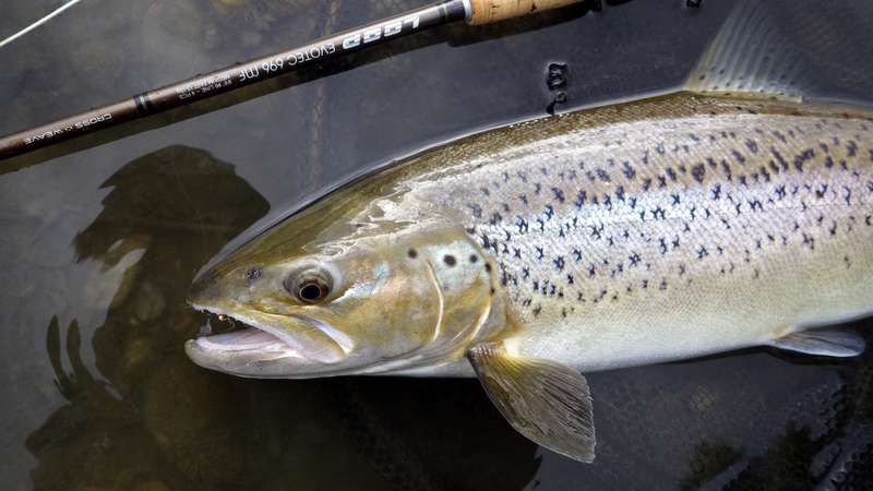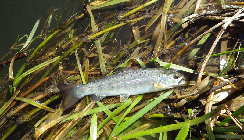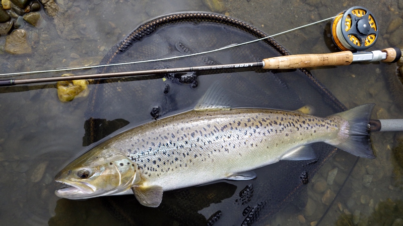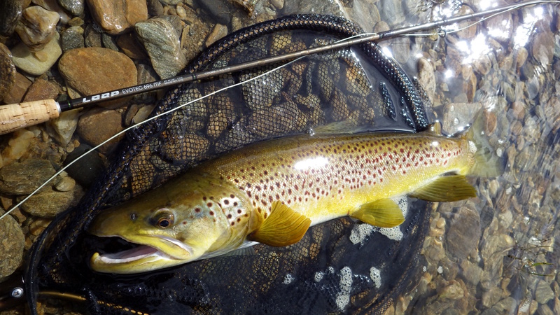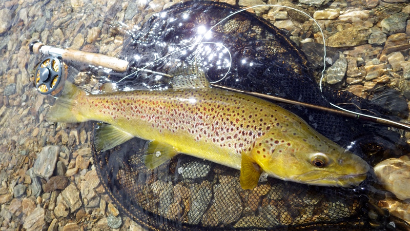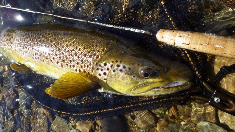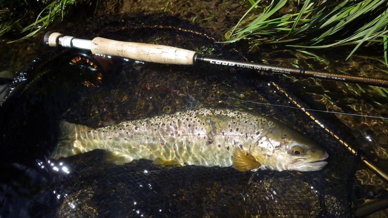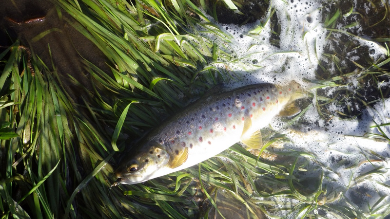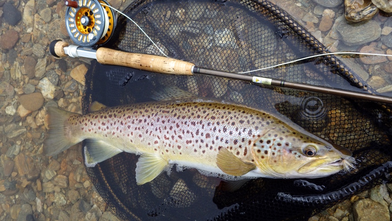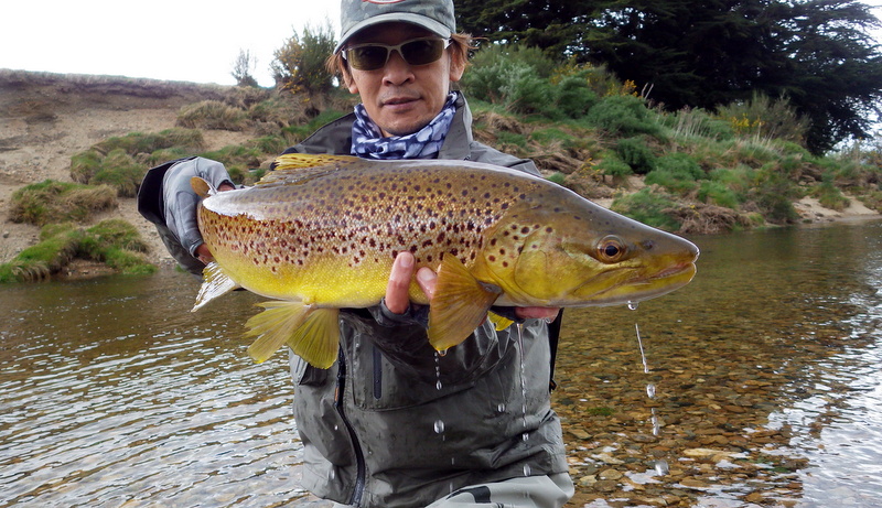 Fly Fishing 2014/10/07 Encountering Unexpected Rises 翌日、月曜日は早朝にまた雨が降ってしまった。 せっかく川の濁りが引きかけているこのタイミングで追加の降雨。 こりゃ終わったな、今週は。 午前中は用事を済ませたりしていたけど、昼過ぎには時間が空いてしまった。 前回の記事に書いた、FISH&GAME NZのオフィスを訪ねた時にオフィサーが教えてくれた、大まかに言うと、Dunedinより南(Gore方面)に向かうとダークな水色の川が多く、逆に北に向かうとクリアーな川が多いという言葉を思い出して気になっていた。 Dunidinから北へ1時間圏内に2本メジャーな川がある。シーズン前にいろいろリサーチした結果、まず釣ってみたい川が南に多かったので昨日はそっち方面にいったけど、北の近場の川も半日釣行向きの川としていつか見に行かなくてはと思っていたので、今日は見るだけでも行ってみるか? ロッド1本だけ用意してSH1を北に向かいます。 手前の1本目の川までわずか40分ほど。近いです。 到着すると予想以上に水色がいい。この川はそれほど濁らなかったようだ。 昨日は見ることができなかった釣れそうな水の色に気持ちも少し上がってきた。 よしやってみるか。 橋のたもとからエントリーしてしばらく川を上がるとブラウンを1匹発見。 けっこういいサイズ。50cmはゆうに超えている。 ただスローな水深のある流れで泳ぎ回ってしまっているのでアプローチしにくい。 ニンフでしばらく狙ってみたけど、姿を消してしまった。 さらにもう少し釣り上がると、水深は浅くなって大きくゆったりとベンドしているフライ向きの流れに出た。 よし、ここからだな。 すぐに1匹、流れを上っていくブラウンがいた。 しまった!スプークされたか?? 完全にはスプークしてないけど、コイツもけっこう泳ぎ回っている。 この川けっこう魚いるんだな。 と思ったら、そのブラウンがなんと2回もライズした! ゆったりと浮いてきて、カプッと水面で何かを捕食した。 ええっ?何??! さっきDunedinを出てこっちに向かう途中、少しみぞれっぽい雨が降ったりしたんだけど。 今は少し日が射してきたけど、今日は寒いし風がメチャクチャ強い。 この状況でライズなの?? まだシーズン始まったばかりの10月上旬だよ。 北島の川では絶対にありえないこの状況に困惑してしまう。 でも、たしかにライズしたよ。 もう、今はまだ10月だとか、寒いからドライで釣れるわけがないとかそういう固定概念はどうでもいい。今目の前でライズが起こっている事実がすべてじゃないか。 システムチェンジを決意。 チェコニンフなんかやってる場合じゃない。ドライフライだ! 慌てず急ぐんだと自分に言い聞かせ、スプール変えて、ガイドにまたラインを通して... さあ、フライは何を結ぶか? この状況なら、まずは... やっぱりこれでしょう。 アダムスパラシュート#13だ。 NZに来てから、ライズの対象がはっきりしないときや、デカイドライへの反応が良くないとき、シーズン中の盛期以外の時期など、レインボウ、ブラウン問わずにジェネラルに使えて最も信頼できるパターンの1つと自分が考えているフライだ。 次のライズを待って、ヤツの位置を確認してから投入。 無視された。。 3回ほどいいレーンを流したけど全く反応しない。 すると少し下流でまたライズ。 アレ、2匹いるの? どうやら1匹ではないようだ。 フライは無視され続けているけどライズがだんだん頻繁になってきた。 全く予想外の状況に出くわして、何だか頭がおかしくなりそうだ。 久しぶりにマッチ・ザ・ハッチの釣り。 よし落ち着け。フライが合ってないぞ。 我に返って、ライズを観察してみる。 派手なライズではない。下から食い上げてきて、魚の頭がデカイから勢いで口先が水面を破って出るような、そして反転して戻っていくときにテールが出たり出なかったり。 そんな感じのライズ。魚の背中はほとんど出ない。 つまり、水面に乗っかっているものではなく、水面直下を漂うものを捕食しているように見える。 虫は飛んでいない。 サブサーフェイスか? 日本で渓流をやっていたときのように多くのパターンは持っていないけど、サブサーフェイスの対策はしてある。 フローティングニンフ#14にフライを変える。 このパターンは北島でも、ドライフライのシーズン序盤と終盤に時として有効だった。 突風並みの強風が時折吹いてきてキャストが難しいけど、風の合間で何とかキャストしてフライをレーンに送りこむ。 フライチェンジから数投で、すぐに答えは出た。 まずは1発目のブラウンが「バフッ」とエマージャーをくわえた。 ほらやっぱりサブサーフェイスだ! これが狂乱の60分の始まりだった。 ライズを見た感じでは50cmくらいのヤツかと思っていたけど、掛けたらもっとデカかった。 ブラウンにしてはかなり元気のいい、強烈なファイト。 ようやく仕留めた南での初トラウトはやっぱりブラウン。 メジャー忘れたけど軽く60cmは超えてるだろう。5lb。 なんてキレイなブラウンな
