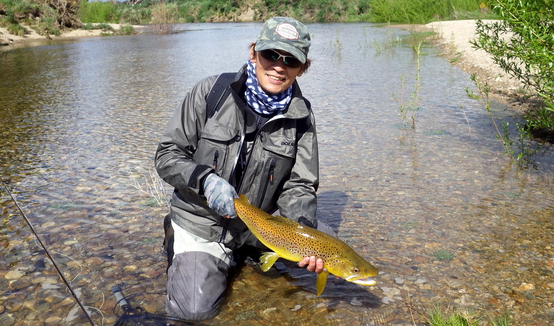 Fly Fishing 2014/10/15 Been hard to catch Otago Brown 日曜日は暖かくなり、よい天気に恵まれました。 先週の日曜日に濁りで釣りにならなかった少し南の川へ向かいます。 静かな朝。素晴らしいNZの田舎の風景。 今日はまた何本かの川を釣り歩くかもしれないので、Didymo対策はしっかりしなくてはなりません。 だいぶ濁りが落ち着いてきてはいるけど、まだあまりいい水色ではないなあ。 どうだろう、なんとかなるかな? ドライ&ニンフで探って、すぐにミニブラウンが反応したけど、いいサイズは全く出ない。 まだこのくらいの濁りが残っているので魚をスポッティングするのも難しい。 サイトフィッシングができないのは正直かなりツライ。 相変わらす、牛と羊は多いけど。 この川は景色が綺麗だし、いい流れでフライフィッシングの理想郷のような川だ。 夏になったら、ドライフライで遊ぶのに良さそうです。 2時間やっても反応がないので、チェコニンフにスイッチすると、ようやくまともなサイズがきた。 まあ、40cmもないくらいだけど。。 昼前にはメイフライも飛び始めた。#15~16くらいの茶色。 でもライズは全く起こらない。 もう少し濁りが引かないと無理そうだな。 ポツポツと小さい魚しか出ないので、この川は見切ります。 それにしても南は広い!デカイ!! 同じファームの景色でも、南はやっぱり北とはスケールが違います。 次はプレシーズンに河口でシーラントラウトを狙った、あの川の中流域に初めて行ってみます。 Dunedinからまだ1時間も走ってないのに、とんでもない大自然で驚愕! 到着したけど、あ~、ダメだ。この川も濁ってる... 釣りはしないでこの川を後にする。 ここから70kmほど走ると、先週、あのシーランぽいブラウンを仕留めた川に行ける。 行っちゃいます。 これでも東京生まれの東京育ちなもので、NZに来て始めはグラベルロードにはちょっとビビッてたんだけど、南に来ると川へのアクセスはグラベルロードばかり。 今では70~80km/hで爆走してます(笑) 先週と同じスポットにまた別の60cmくらいのブラウンが居て、サイトで2回ニンフを食わせたのにいずれもスッポ抜け(泣) そこは少し高いバンクの上からのアプローチになるので、フッキングのアングルが付きすぎているようです。 加えて、サイトで魚がニンフに近寄っていく段階から見てしまっているので、タイミングも早すぎるのかも。 次にまだいたら、今度こそは仕留めたいです。 今週はいい魚には出会えなかったけど、NZ Otagoの大自然は満喫しています。 こんな感じで春先のこの時期、いいライズがないときにブラウンを仕留めるのはかなり難しい。 たまに見つけても、フォルスキャストを始めた途端にスーッと深いほうに消えていってしまったり、ほとんどアプローチもできないありさま。 イブニングに超シャローで起こるまばらなライズは見向きもされない。 釣りに修正が必要なので、現在試行錯誤中です。