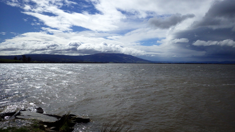 Fly Fishing 2014/09/21 The First Fish in The South 早いものでDunedinでの新しい仕事も最初の1週間が終わり、とりあえず南での初めての釣りに行ってみようってことで、近場でウィンターシーズンの釣りがOKな場所をリサーチ。 まあ川の下流域かレイクになるのは北と同じですが、いくつかありました。 Dunedinのエアポートの近くを流れる、このリージョンでも代表的な川の1つをピックアップ。 この川のリバーマウスでシーラントラウトにトライしてみることにしよう。 シーラントラウト(Sea Run Trout)とは要するにブラウントラウトの降海型のヤツだ。 釣ったことないから釣ってみたいじゃないか! 行きますっ!! ちなみにDunedinから40分のドライブで行けちゃいます。近い! シーズンは通年。ターゲットはブラウンの他にチヌークサーモンも書いてある。 どうなんだ? まったく知らない場所で、釣ったことのないターゲット。 はっきり言ってやってみないことには全くわかりません。 だだっ広いし。。(笑 ダブルハンドでいってみよう。 フライはまあ、日本の海アメの釣りあたりが若干参考になるんじゃないかと思って、S坂さんのサケ稚魚フライを参考にさせてもらったオリジナルをうちにあったマテリアルで適当に巻いてきた。 シーランは現地でホワイトベイトと呼ばれている1インチくらいのベイトフィッシュを捕食するということなので。 ちなみにこのフライ、北のレイクでもスメルトパターンの時には普通にレインボー釣れてました。 フックサイズは#6です。 今朝は8時過ぎがロータイドで、下げ止まりから潮が動き始めるタイミングで釣ってみようと思って、9時半頃にスタート。 こっちがマウス、海との出会い。 上流には橋が。 美しい場所です。素晴らしい眺め。 ライズやジャンプしている魚は全くいないようだ。つまり魚っけなし。 数人、スピンフィッシングをしているローカルのアングラーもいるけど、誰もロッドは曲がらない。 う~ん、全然釣れる気がしないなあ~。。 スタートから30分を過ぎた頃、上げの潮が動き始めて、ラインが上流に向かって流されるようになってきた。 ところどころに潮目ができたりもして、何かが起きそうな雰囲気にはなってきたけどどうなんだ?? さっきまでウーロン茶のような水色だったのが、あっという間にクリアーな海水に変わっていく。 どんどん海水が満ちてくるのがはっきりとわかる。 しかしバイトはこない。 ラインもFボディ+インターティップからインターボディ+T-3ティップに変えてみたりしながら、2時間近くネバってはみたけど、何もなし。 よし、休憩だ。 けっこう風も強くなってきたしどうするかなあ? 上げ止まりから下げていく潮で釣ったほうがいいのかなあ? そもそもこのウインターシーズンのシーランやサーモンはもうここに入ってきているのか? 9-11月くらい(春)がシーズンということらしいけど。 もうちょっと通ってみないとわかりませんね。 この川の15kmほど上流にレイクがあるので、そっちも様子は見てみたい。 よし、レイクに行ってみよう。 レイクに着くと風がビュウビュウじゃないか。。 まあまあ大きなレイクです。 フライのターゲットはやっぱりブラウンだな。 パーチやうなぎに、あと... なんだこの"Giant Kokopu"って魚は? 説明によると、これとうなぎが"native"つまり、もともといた在来種ということだ。ブラウンやパーチは"introduced"、移入種ですね。 ちなみに河口湖なんかでもよく、放流バスに対して河口湖で自然繁殖したバスをネイティブといいますが、これは正しくありません。 そこで自然繁殖したワイルドフィッシュであっても、バスはもともとそこにいた在来種ではないので"native"ではなく"introduced"です。放流か自然繁殖かという区別で言うなら、自然繁殖は"wild",ワイルドといいます。 ババ荒れだけど、とりあえずやってみよう。 そしたら、なんか4投目でいきなりヒットしたんですけどーー!! けっこう重い。。 そんなに走らないけど、下に潜るタイプのファイト。 こりゃ、ブラウンきたな。よっしゃーー よしよし、意外とすんなり浮いてきたぞ~ アレッ、なんかカラフルな魚なんですけどーー うわっ、パーチだよ、パーチ!! デカイパーチだ! なんと南島ファーストフィッシュはパーチ。 パンパンで800~900gくらいはありそう。 外道の釣れることのないNZの川、湖なのでトラウト以外の魚をNZで初めて釣った。 パーチは若い頃にカナダのレイクで釣ったことがあるけど、こんなにデカイのは初だなあ。 もう23年くらい前だ。 この魚を見たら、冬に日本に帰っていたときに釣った多摩スモを思い出した。 プリスポーンのブリブリのヤツだ。 多摩スモ 2014年2月 Perch 21/09/2014 New Zealand なんか似てる気がするけど、そうでもないか? パーチは尾っぽの付け根が細いから、あんまり引きが強くないんじゃないだろうか? 背ビレはバカデカイけどね。 引きの強い魚は尾の付け根にパワーがある気がする。 やっぱり多摩スモのほうがガッチリ筋肉質でカッコイイな。 この後