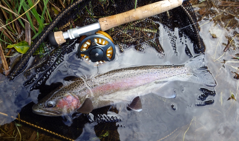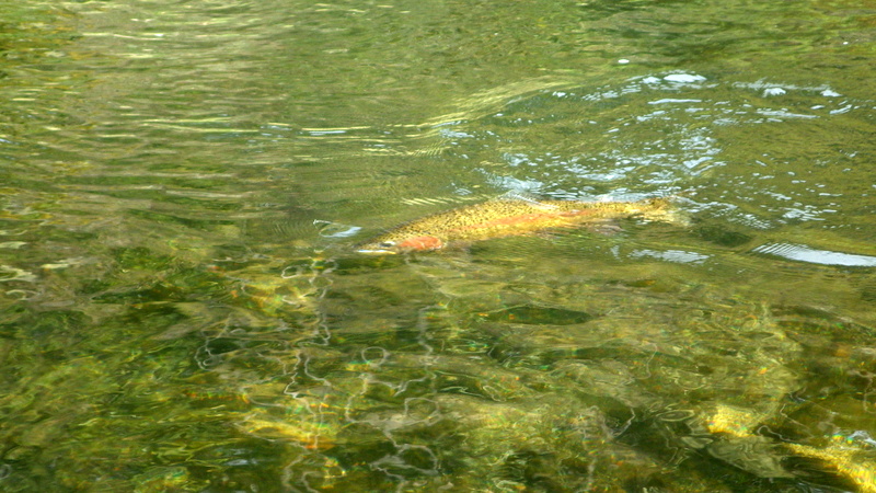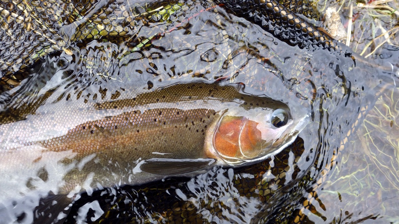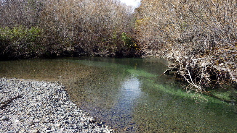 Fly Fishing 2014/09/08 Enjoying The North Rainbows 3日目、今回の釣行最終日。 昨日いい釣りが出来たので、気持ち的にはずいぶん楽だ。 まずは早朝のTongariro本流勝負をもう一度、1時間半ほどやってから、昨日サイトで2本いい魚を仕留めたあのスポットにはまだ魚がいたので、あそこだけやるためにあの川にまた行こう。 その後は昨日の2本目の川を今日は時間をかけて、もう少し上流まで釣ってみよう。 昨日のつり橋下のプールよりもう少し下のプール。 ホントは上流に歩いてから釣ろうかとも思ったけど、カーパークで準備中に地元のKiwiアングラー.たちがバァーっと車で乗り付けて、先につり橋を渡っていったので上はあきらめた。 こっちもいい感じのポイントだけどバイト無し。 昨日の夕暮れに釣ったプールも不発だ。 予定通り90分ほどで切り上げて次の川、あのスポットへ。 やりたいのはあのスポットのみだし、見える魚もいないのでほとんどキャストせずにどんどん上がります。 ところがまだ途中の、とあるプールに一匹浮いているのを発見。魚は上流を向いていて、10mくらい手前で発見したのでスプークはされていない。 チャンスだ。 オーバーハングの枝が広く張り出しているので下流からは狙えない。 慎重に魚の斜め左後ろにポジションを取って、アプローチ開始。 しばらくすると他にも数本、ボトム付近で蠢いているのが見える。 昨日はいなかったけど、今日は魚たまっているな、ココ。 最初に見えていたヤツは反応しないので、流すレーンを変えてボトムに張り付いているヤツを狙ってみる。 48cmのいいヤツが反応。 昨日3本落としたので、今日は主導権を取られないように強気のファイトでランディング。 最初に浮いていたレッドバンドのオスも食わせたけど、しっかりフッキングしなかった。 再びボトムまでグッとニンフを沈め込んで、 もう1発。50cmくらいのナイスコンディション。 よーし、今日も幸先良く2本捕った。 ここで1時間くらい費やして、目指すスポットへ。 到着すると、 アレ、魚見えない。 昨日は軽く10匹以上いたのに。釣り残しがまだまだいたはずだが... 自分が見えていないだけということもあるので、しばらくニンフを流しながらずっと観察してみるもののやっぱりいない。 1日で魚が動いてしまったのか? あきらめて引き返します。 よし、またもう1本の川に行こう。 昨日、この川の1本目が出たのと同じスポットから今日も! 昨日よりずっといいサイズ。 3lb、50cmのレインボウでした。 ん~~、楽しい~~ 昨日よりもっと上流まで釣り上がってみよう。 水深のあるブラインドで出るべきスポットはなぜか不発。 なので、今日はこの川でもサイトフィッシングがメインになる。 まあまあのサイズを4本追加することができた。 帰りに対岸から川を上がってエントリーポイントまで戻ったら、車3台くらい止まってた。 なるほど、きっと誰かが釣った後だったんだな。 結局今日も2本の川でトータル7本。 うん、上出来、上出来。 冬だしね(笑) 北島最後のTaupo釣行が終了です。 一日目ノーフィッシュ、2、3日目は各7本のトータル14本キャッチ。 やはり低水位、低水温の澄んだ川は厳しかったけど、けっこういい釣りが出来た気がする。 Tongariroでも1本だけだけどツーハンドのウエットで釣ったし、何よりサイトフッシングはエキサイティングで楽しかった。 数も3日で2桁いければいいと思っていたけど、それ以上の釣果で満足。 今回釣った2本の小さめの川は、ドライフライシーズンにも是非釣ってみたい。 いつかまた来よう。 やはりGreat Lake Taupoは素晴らしい! 北島のレインボウ最高!! よーし、帰ろう。