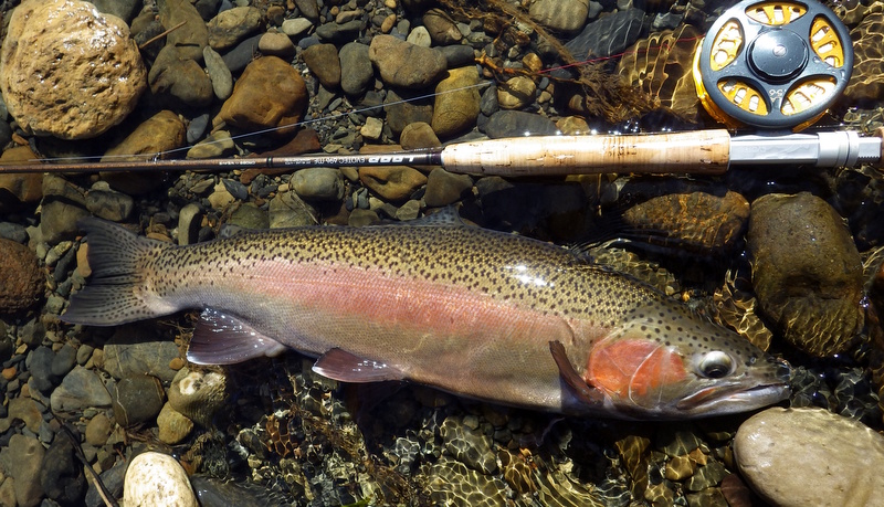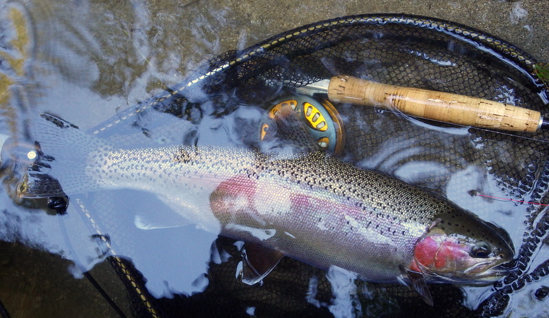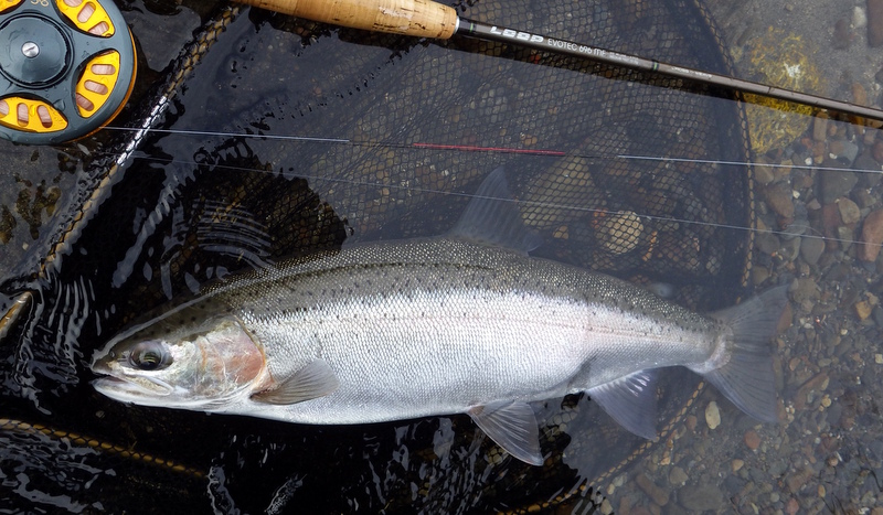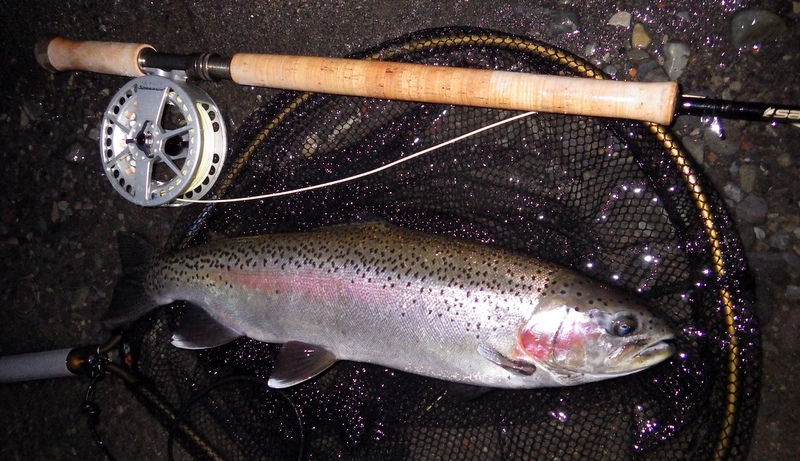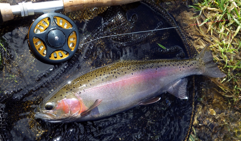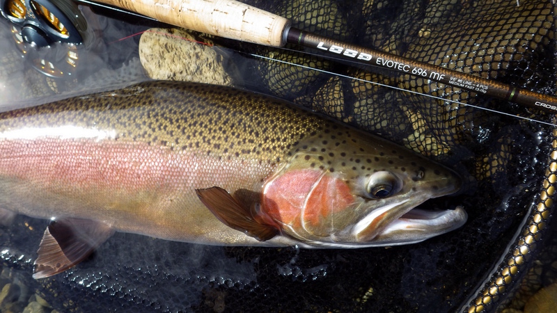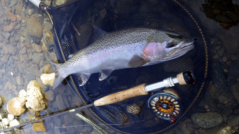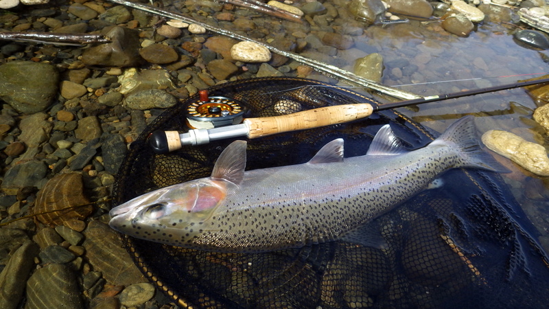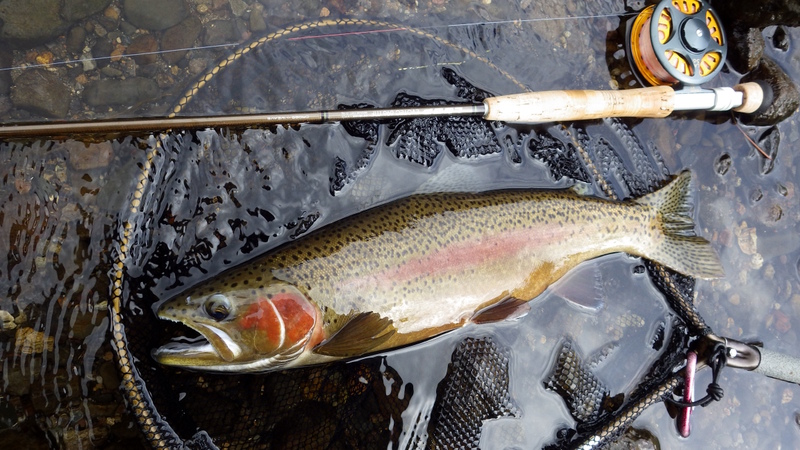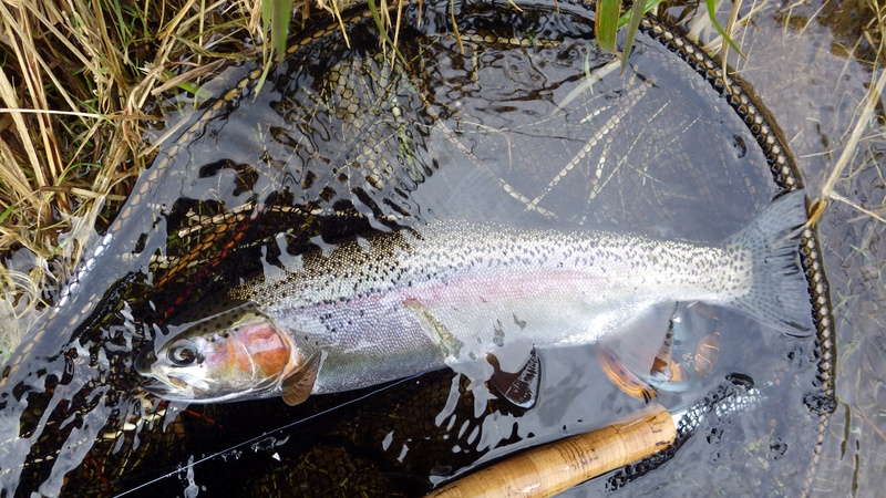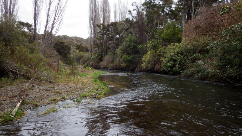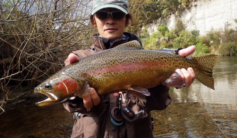 Fly Fishing 2014/09/05 Winter Czech Nymphing on Fire! 勝負の2日目だ。 今日は絶対に釣らなくてはならない。 昨日川を見て回った結果、Tongariroより小さい川のほうがいいと思う。 まずは昨日、魚が見えていた川を朝の3時間ほどやって、その後はもう1本見たい川があるのでそっちをチェックしてみよう。 昨日の川。今日こそは必ず仕留めてやる! と気合を入れてスタートしたものの、朝の時間帯、昨日より見える魚がいない、というか全くいない。 やはりまだ冬の終わりなので、少し暖かくなってからでないと魚が動かないか? でも昨日の午後見た感じだと、あんまりハイライトになってしまうとスプークしやすくて、それもキビシイんだよなあ。。 景色と天気は最高なんだけどなあ。 ムズカシイなあ。。 何にも釣れないまま、2時間くらい釣り上がっただろうか? とあるプールでやっと魚を発見! 直角に曲がるベンドに、増水時に流れ着いた流木や枝がたまっているポイント。 しばらく観察してみる。 オオッ、複数のグッドサイズの魚が固まっているじゃないか!パッと見で10本くらいいるぞ。 ちょっとでも気配を感じると、スプーク気味にこのプールの中をブンブン走り回っているけど、ここから離れる様子はない。 慎重に慎重に近づいて、チェコニンフでアプローチ。 数投で1匹食わせることに成功! でも枝に巻かれてバレてしまった。。。 クゥッソーーー、ようやく掛けた1匹だったのにーーー さらにネバってもう1発! 今度は巻かれないように、強引にダッシュを止めにかかったら、フロロ3Xのティペットを切られた~。 クヤシイィーーー 今回の釣行は1匹への道のりが遠いな... バラすは、根がかりでニンフはどんどんなくなるはで、めげそうになりながらもアプローチし続ける。 そして3度目のフッシュオン!! 今度は大胆、かつ慎重なパワーファイトでようやくランディング成功。 50cm、4lbのナイスレインボウ。 やっと釣ったーー。 久しぶりのいい魚だよ、もう。カッコイイ、オスのレインボウ。 完璧な魚体だ。 これがTaupoのレインボウかあ。Taupo方面でまともなサイズを釣ったのは初めてなのでうれしい。 よしよし、もう一発狙っていく。 そして、再びフィッシュオン! 今度はさっきよりデカイ!! すぐ後ろにはブッシュが控えているので、ロッドを立てて、上へ上へと強引にリフト。 あ、これはマジでデカイ。 マイLOOPロッド折れそう。。 がんばってくれーー ランディングしたーー 今度は5lb、57cm。またまた完璧な魚体のオスだ。 クーーッ、やっちゃった。これぞ求めていた魚だ。 この後もう1発掛けましたが、再びティペットを切られてドロップ。 結局この1スポットで5本食わせて、2キャッチ、3ロスト。 デカイ魚が固まっていた、今の状況では奇跡的なスポットだった。 昼過ぎにこの川を上がって、次の川に向かいます。 ここも初めての川。エントリーポイントから2.75km上流までは冬でもOKだ。 メッチャいい川じゃないか! さっきの川より水量があって、水色もほどほどに色が着いていて釣り易そう。 ただバンクのブッシュはOver Grown気味でブラックベリーが多く、水深もあるので歩きにくそうな川だ。 初めてすぐにブラインドのチェコニンフで1発! キレイなメスのレインボウ。 43cmくらいだけど、太くていい魚だ。 次は45cmのオス。 とりあえず 1kmくらい釣り上がってみて、もう2発。 両方とも45cmくらいの太いメスをブラインドで。 いや~、いい天気だなあ。 そういえば、New Zealandのマオリ語の国名、”Aotearoa”は「細く長い雲(がたなびく地)」という意味なのだ。 今日の青空に薄く長く広がる雲はそんな感じだ。 こっちの川でも4本釣ったからいいだろう。 明日はもう少し上流まで上がってみよう。 今日はトータルで6本釣ったので、夕方はTongariroに賭けてみる。 他のローカルアングラーはほぼ例外なく、ご当地メソッドのデカイインジケーターにヘビーニンフの釣り。 自分はこの方法ではなく、スペイロッドにウエットフライのノースアメリカンスタイルでスチールヘッドっぽく釣ってみたいのだ。 今回の釣行のメインテーマは「スペイでTongariroを釣る」ですから。 昨日のつり橋したのプールに入って、1時間半のイブニング勝負。 いつもレイクでも使っている、パートリッジをフロントに使ってウエットっぽく巻いた黒のウーリーバッガーを流す。 何のアタリもないまま6時を回ってあきらめかけた頃、流し終わりのターンでバイトがっ! あ~、ショートバイトで乗らなかった。 集中して同じレーンをもう3回ほど流すとガツーンと乗った!! 久々にSAGE ONE 7126でリールファイト! そんなにデカくはないけど、とりあえず3lb、50cmのレインボウ。 ついにTongariroのレインボウをスペイで釣ることができたーー! もう暗くなってしまった。 よしよし、テーマも達成したし、7本釣って大満足の2日目終了。