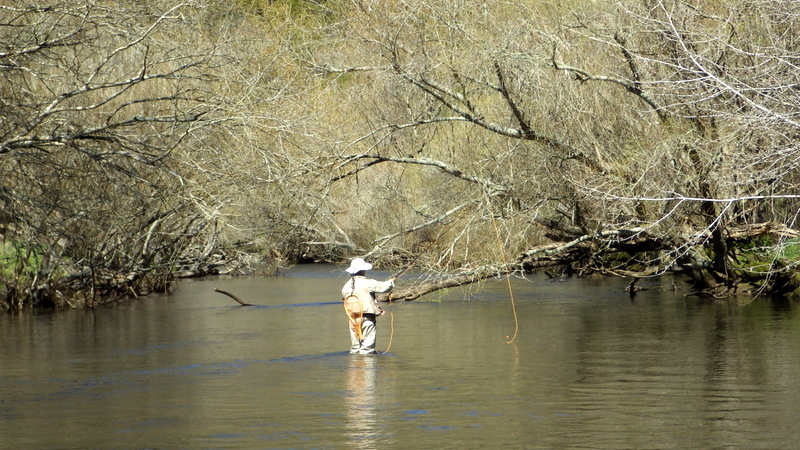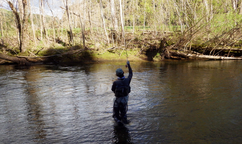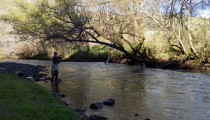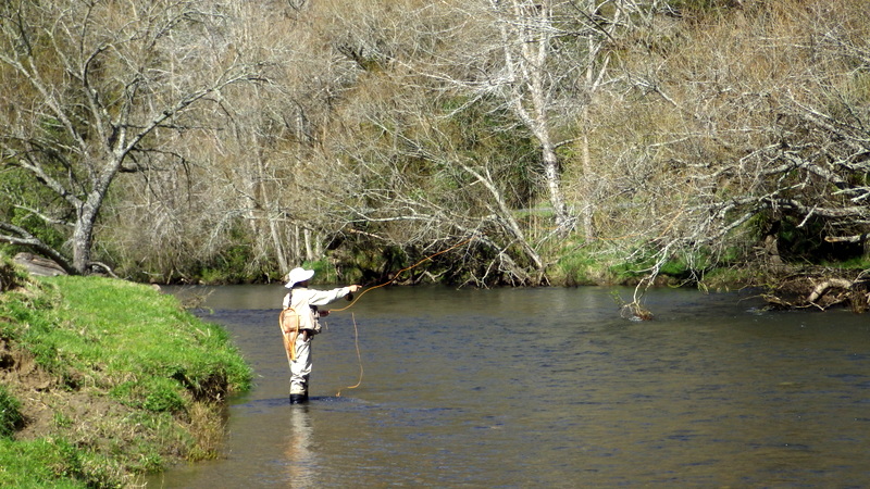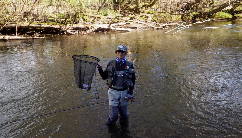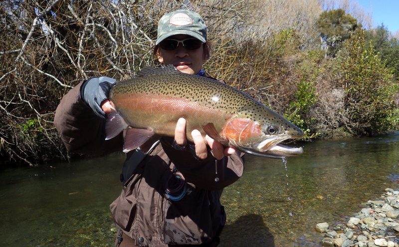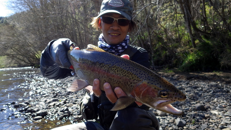 Fly Fishing 2014/09/10 New Fishing Buddy Taupoがとりあえず最後の北島釣行になる予定だったのだが、Aucklandを離れる間際になって新しい釣り友ができた。この2年間捜し求めていた休みの曜日が同じという(笑) な~んだもう少し早く知り合っていればといったところだけど、フライフィッシングは最近始めたということだしまあ仕方ない。 南島への引越し前々日でちょっと忙しいけど、荷造りも60%くらい終わったし、せっかくだから一緒に行こうってことで、早春のトラウトリバーに案内。 ここは去年のオフシーズンに1回来ただけで、自分自身も2回目だけど、ホームリバーのストリームはもう1本別の川を経由してこの川に流れ込む同水系の川。 つまりここがこの水系のメインの川で、中流~下流域はウインターシーズンでもOK。 今日はESNでチェコニンフオンリー。 開始早々から元気な40cm弱のレインボウが反応してくれて、楽な展開に。 50cmくらいのブラウンと48cmのいいレインボウも出た。 素晴らしい天気に恵まれて、春の到来を感じさせる暖かさ。 気持ちがいいなあ。 友人は苦戦しながらも頑張ってます。 午後になって、後半は友人にも初のチェコニンフにトライしてもらいます。 今日はブラウンと最大のレインボウ以外、釣れたのはすべて水深のあるトロい流れのボトムばかりなので、チェコニンフをやらないと正直キビしそうだし。 去年来た時に見つけた、取って置きのスポットを友人にやってもらおう。 そしてついに友人もチェコニンフでキャッチ! やったね!! やはりこのスポットは今日も多くの魚をストックしていて、2人で交代に流しても釣れ続く。 自分はここより下のポイントに入って、35~38cmくらいのヤングレインボウをちょっとかため釣り。 Taupoのタフでスーパークリアーな川で3日間釣ってきた自分としては、今日のこの川の水色はとっても楽。このほどほどに色の付いている水はアプローチしやすい。 いつもほとんど単独釣行で、自分の釣りをしている姿の写真がないので、今日は友人に撮ってもらった。 軽く6~7時間の釣りだったけど、12本くらい釣れてかなり楽しんだ。 友人も徐々にチェコニンフィングの釣りに慣れてきて、5~6本釣ってました。 1人で釣果を追求するストイックな釣りも好きだけど、やはり2人で釣るのは楽しい! 今度一緒に釣りをするのは北島か南島かまだわからないけど、せっかくNZというフライフィッシャーマンにとっては最高の場所に住んでいるんだから、ぜひフライフィッシングを続けて、楽しんでもらいたいものです。 きっと今度会うときは上手くなっているだろう。 けっこうハマッているようなので(笑) ところで今日は南島、Christchurchの宿でこれを書いています。 ただいま引越し、大移動の真っ只中。 Aucklandから990kmドライブして、今日はChristchurchに。 明日あと400kmほど走ってようやくDunedinに到着です。
