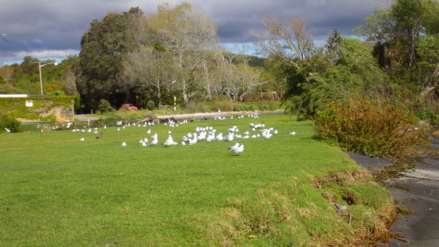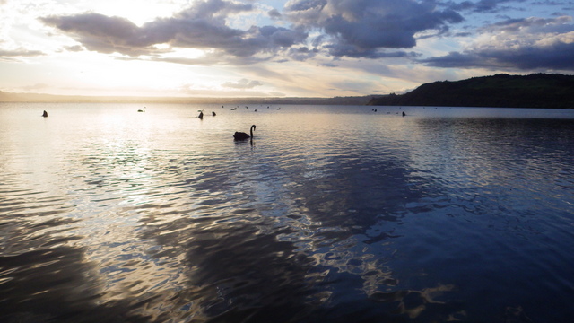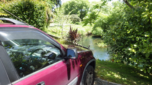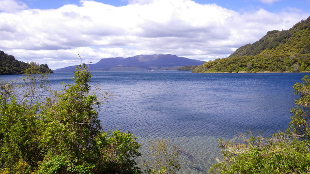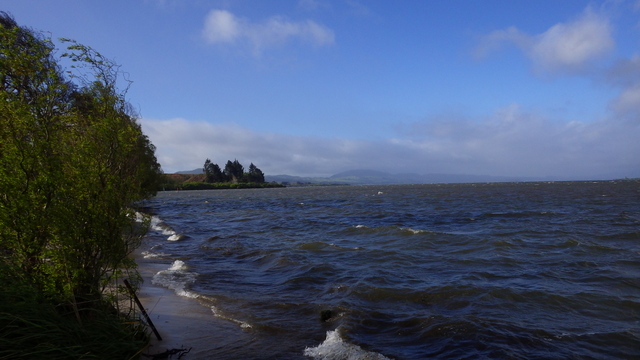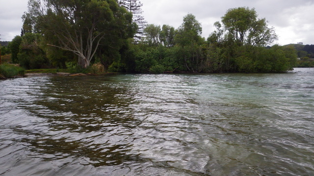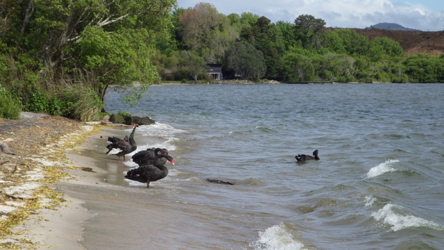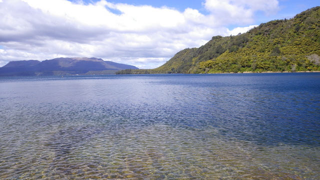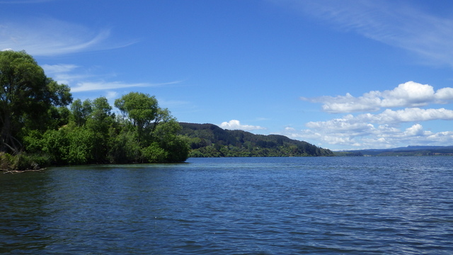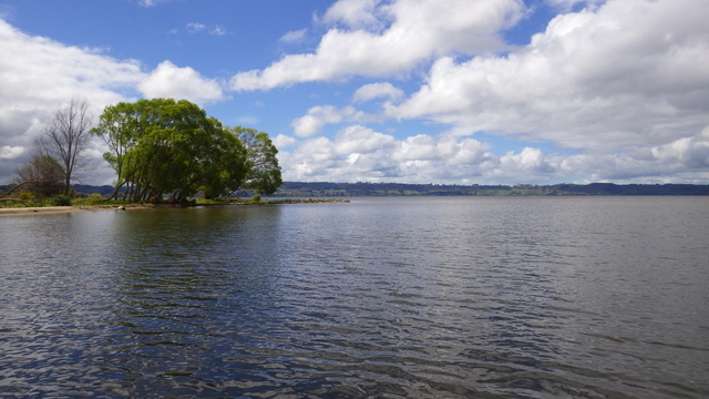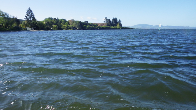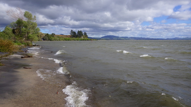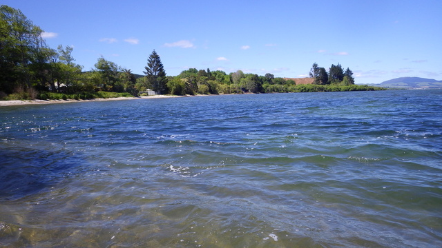 Fly Fishing 2013/10/14 A Gusty Day 先週のトラウトストリーム解禁釣行はあまりよくなかったので、今週はレイクに逆戻り。 またいつものチャンネル入り口のポイントで、ガツンと衝撃的なバイトが味わいたい。 ただ天気予報ではけっこう風が吹くようなで、それが気がかり。 ちょっと遅めの9時過ぎに現地到着するものの、 うわ~、こりゃダメだ~~ 予報では西風ってことだったので何とかなるかなと考えていたが、実際には強い南西風。 白波ジャバジャバで、すでにこのエリアは激濁り... とりあえず20分ほどやってみますが、すぐあきらめた。 さあ、どうするか? 南西風だから、西岸と南岸のポイントが風裏になる。 隣のLake Rotoitiの南岸が近いけど、この前もそのパターンだったから、今日はLake Taraweraの西岸にしよう。 Lake Tarawera、すごく綺麗なレイクです。 超クリアなブルーの水。正面の横に広い山がMt.Taraweraです。 2ヶ所ほどやってみますが、バイトなし。魚の気配なし。 なんだか眠くなってきたので、11時だけど早くも昼寝 zzz...(ビールなしで)。 1時間半くらい寝た。Lake Rotoruaにもどって、西岸のストリームマウスのポイントへ。 春になったことだし、シャローを徘徊しているブラウンがいるかもしれない。 ↓ いませんでした(笑)。 チャンネルのポイントに戻ってみよう。 ダメだ~~、今日は風が止まないよ。吹きっぱなしだ~ また鳥たちも全員丘に避難中。 もう行くところもないし、やってみよう。一番やりたいここでやって釣れなければ、納得できるし。 シュートするランニングラインもいつもより短めにして、飛距離よりはこの強風下でもリーダーの先端までターンオーバーさせることを重視。水面激荒れなので、ヘッドはインターミディエイトのボディにT-3のティップで20mくらいのディスタンスをコンスタントにターンオーバーさせて狙っていきます。 2時間くらいはがんばった。でも1発もバイトはなし。 やっぱりこの濁りはキビシイなあ~ 仕方なく西岸のさっきとは別のストリームマウスで最後の時間を過ごしますが、魚の気配はなく終了。 1日目ノーフィッシュ!風景写真集となってしまった。 ん~、1日中吹きっぱなしはマイッタ。春は風の強い日が多いのはNZも日本も一緒ですね。 今夜はホリデーパークで久々の車中泊。明日は風止んでくれるかなあ?