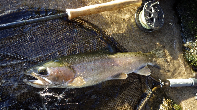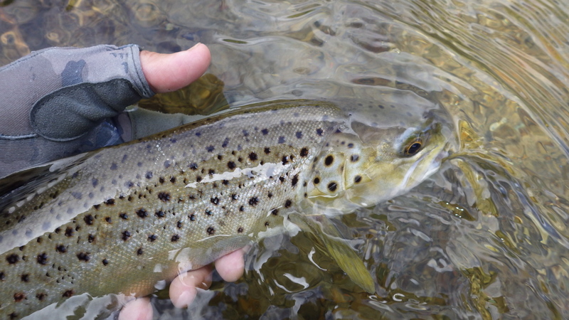 Fly Fishing 2013/11/05 Rising fish 今週末もLake Rotoruaとストリームの2本立てプラン。 先週ターンオーバー気味だったレイクの水は良くなっただろうか? チャンネルのスポットに到着するものの うわ~、先行者2人入ってるよ~ 自分の定位置に陣取られた。まいったなあ。。 仕方ない。でも先週も少しやったHamuranaのストリームマウスも気になっていたので、先にそっちを見に行こう。 まだサマーパターンにはちょっと早いけど、この低水温のストリームマウスにそろそろ寄ってきている魚はいないか? う~ん、まだだ。 1時間くらいやってもアタリがなく、ライズしている魚も全くいないのでチャンネルに戻ってみる。途中でさっきチャンネルに止まっていた車とすれ違った。 よし!ポイント空いたかも。 到着すると先行者いなくなってる。 水はまだ少しトロンとしてて、泡も浮いてるけどだいぶマシになった。今日はそんなに風も強くない。 フライはいつものマラブーで、開始から40分くらいで1発目! 測ってないけど、たぶん48cmくらいのいい魚。先週のようなスキニーなやつじゃない綺麗なレインボーだ。 その1時間後くらいに2発目! 45cmくらいのコロコロしたメス。体側の傷は鳥に襲われたのかな? 風がだんだん弱まってきて、ライズはあるんだけどなかなか食わない。 昼にいったん切り上げて、ホリデーパークにチェックインしに行きます。 ここは敷地内をこんなスプリングストリームが流れているのが売り。このストリームの上流が解禁するのは12月1日。スーパージンクリアーな水に50cm以上のレインボー、ブラウンがワラワラ泳いでる恐るべき川です。 さあ、午後の部いってみよう。 なんだか夏っぽい天気になってきたので、チャンネルに向かう途中、もう一度Hamuranaに寄ってみる。 う~ん、だめだ。 まあシーズナルなパターンは早め早めにチェックしておくのが大事ですからね。 そしてまたチャンネルエントランスに。 風が北になって、久しぶりにこのスポットが風裏になった。今日の夕方は良さそうだ。 朝からライズしてるのがいたけど、まだたまにやってるなあ。 午後2時半。ハイライト、無風で難しい時間帯だけどやってみる。 ライズしてるのはけっこうデカイね。 流心の手前のコーナーに重点的にフライを流す。 狙いを定めたピンスポットの上手からフライが流れていき、ピンに到達するちょっと前にまたジャボッとライズして出てきた。その直後にフライが通過。 んっ、このタイミングはもしかして食うんじゃないか? そしてラインが止まる。 少しドローしたラインに生命感。 食ったぁーー!!! アワセ決まったーーっ! デカイデカイ!! 引きは強烈だけど、チャンネルの方に向かって流れを下らずに、レイク側に走ってくれたのでその点では楽だった。 ランディングに成功! 6lb弱、62cmのメス。こ~れはいい魚だ! 頬の赤が綺麗だこと。 よしよし、久々のクオリティーフィッシュだ。狙ったライズを仕留められて大満足の1本! こういうライズ狙いの釣りはもうタイミングがすべてですね。 ライズを観察して、次に出てきそうなピンポイントを特定して、ピッタリのタイミングでフライが到達すれば真昼間でもこんなのが釣れてしまうという。。 まあいつもこううまくはいきませんが(笑) フック(VARIVAS2500v、#8)を外してみると、強烈なファイトでまたけっこう開いてた。 危なかったな~ 毎週こんなことばかりやってるから、フィンガーガードはすぐボロボロのダメージ加工仕様になってしまう(笑) ライズしてた魚も釣ってしまったし、この後はバイトがなく期待の夕方を待ちます。 サマータイムの今は8時くらいまで明るいので、6時過ぎくらいからがいいんじゃないか。 ところがその時間になってもバイトが全く出ない。 風がなさ過ぎ?? いやこのスポットは流れがあるので、風がなくても釣れる。 エサ取りに夢中なブラックスワンたち。 7時半まで粘るものの、全くノーバイト。 対岸側からウェーディングして、ニンフを流しているローカルアングラーもノーバイト。 ダメだ~、先に上がるよ。 明日の朝また3時間くらいやってみよう。 本日3本で終了! PR