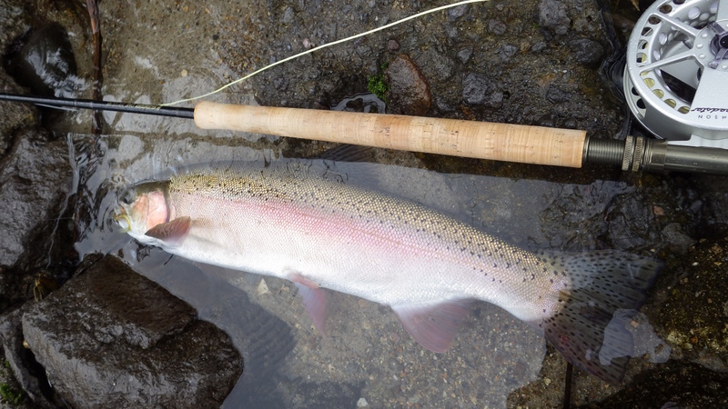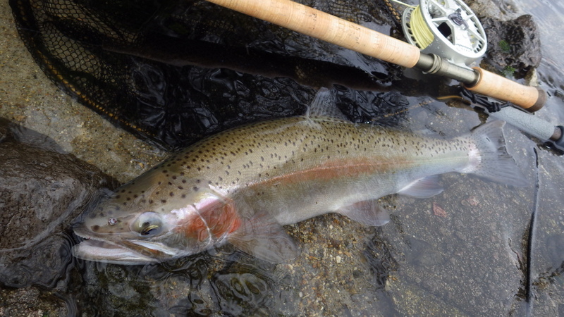 45cmくらいのレインボー。Good Fighterだったけど、これはハッチェリー(養鱒場)産の稚魚放流から育ったやつですね。