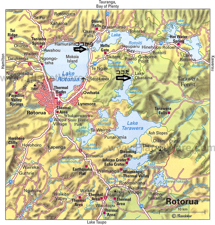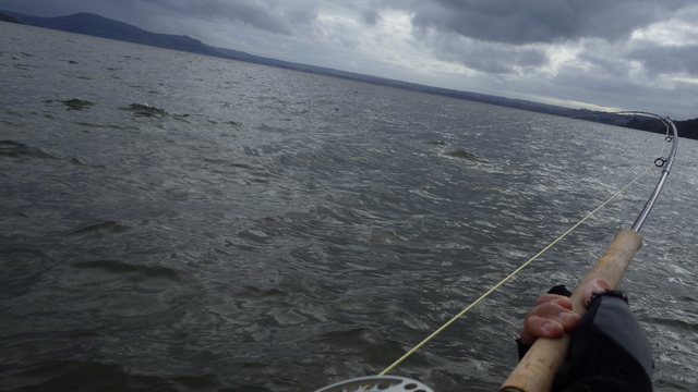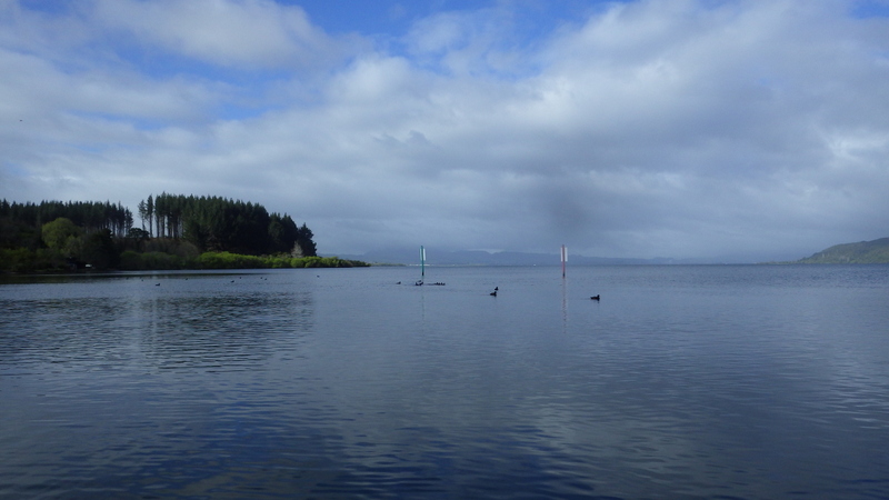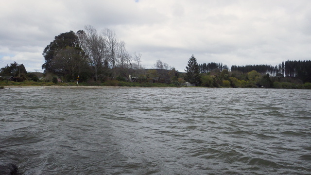 Lake Rotorua は面積79sqkmで、北海道の屈斜路湖や支笏湖と同じくらいのビッグレイク。ちょうど写真中央の奥、かなたの光が指しているコーナーがさっきまでいたチャンネルのエリア。風裏の西岸からはNEのチャンネルの荒れ具合は全く伺い知ることが出来ないほど。