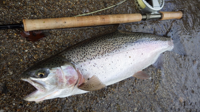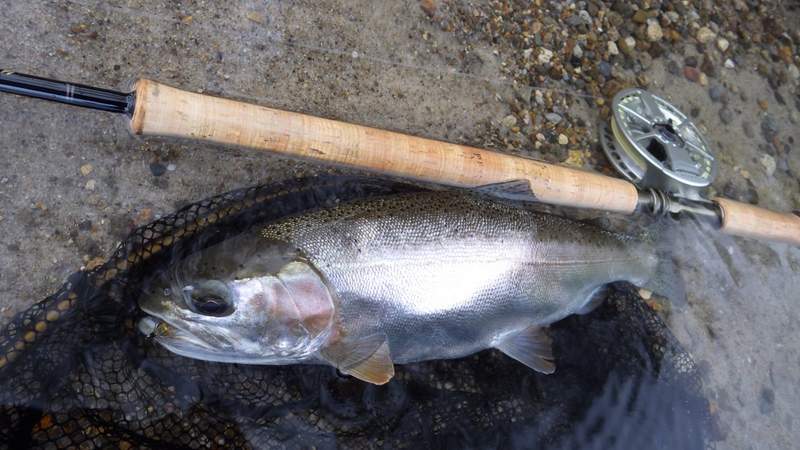 昨日5本、今日も5本すべて同じタックル。このSAGE SPEY ONE、3ヶ月くらい前に新調したばかりなのに、もうかなり釣ったなあ~。30本以上は釣ったはず。しかも入魂のファーストフィッシュが自己ベストのブラウン、8lb、73cmだったし、自己ベストのレインボー、7.5lb、67cmも先月このロッドで釣った。ツキもありそう。