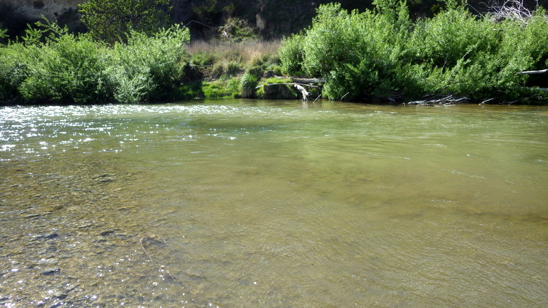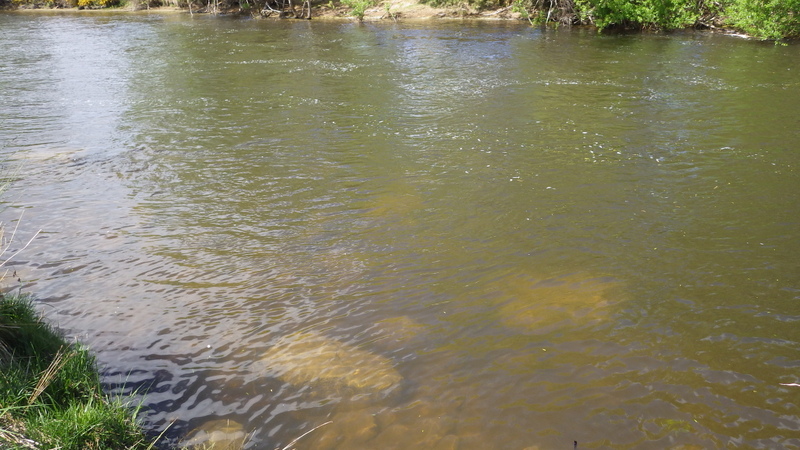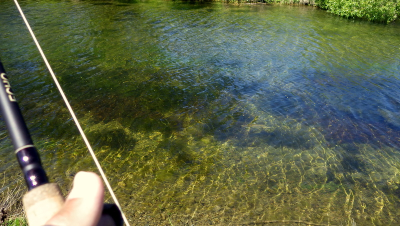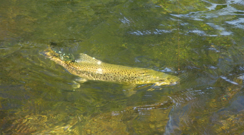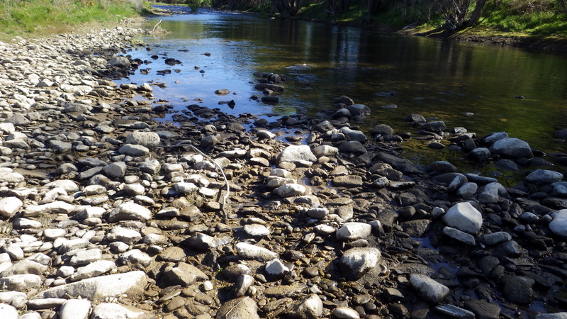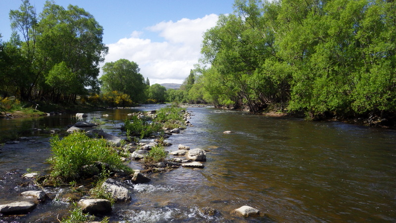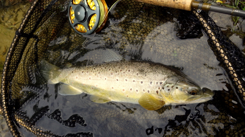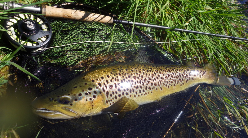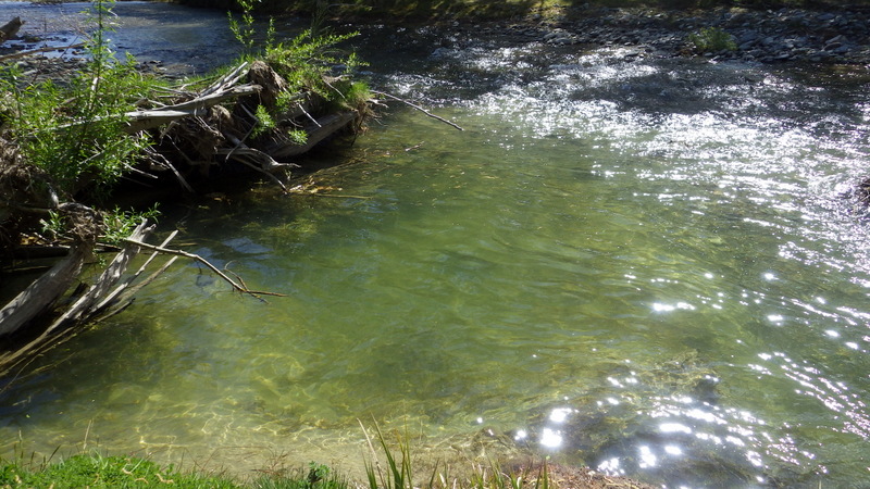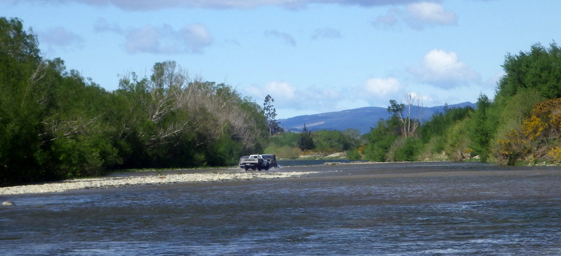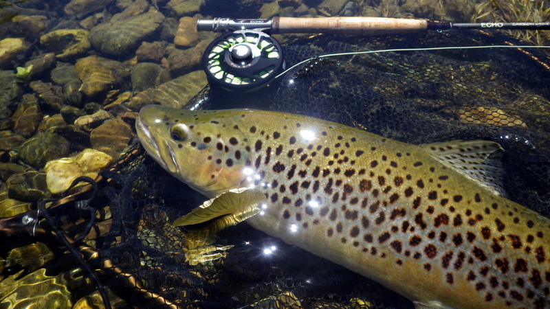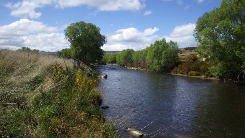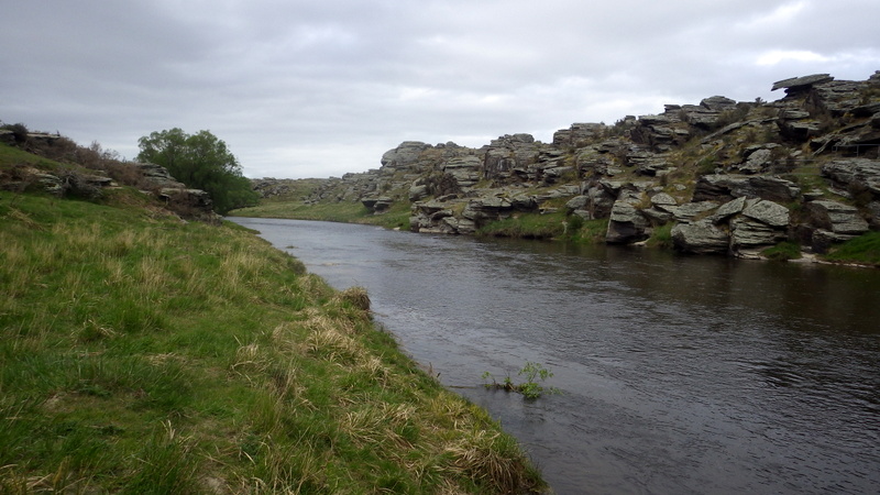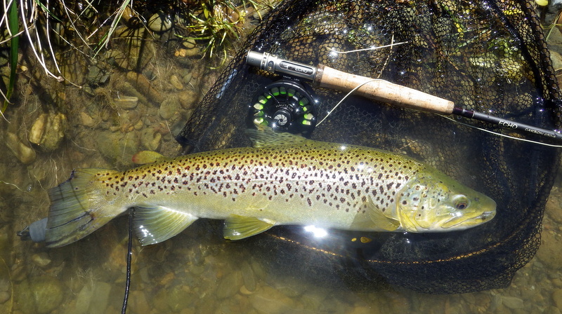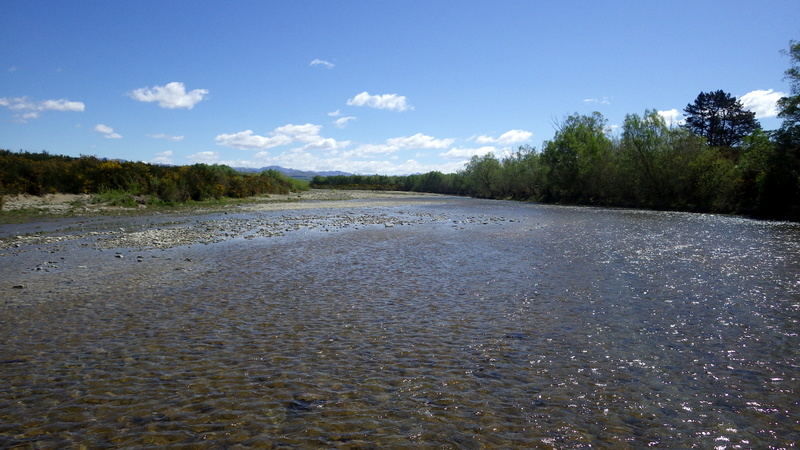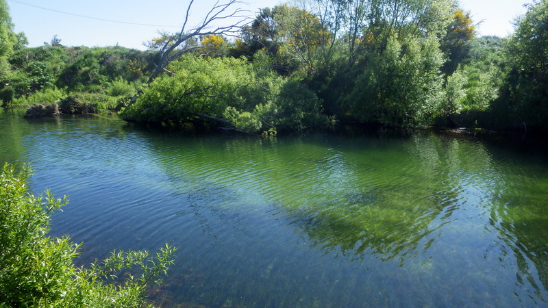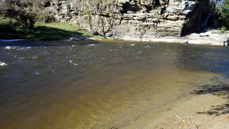 Fly Fishing 2015/10/22 Gale doesn't stop... さあ、明けて月曜日です。 いつもは日曜日にガッツリと丸一日釣って、月曜日はゆっくり昼から半日とかが多いんですが、今週は昨日釣れなかったので、そうゆっくりしてもいられません。 今シーズン初のホームリバー釣行で楽しみだし、頑張って朝から出撃(といっても8時過ぎに出発)です。 昨日ダメだった川で解禁から2週連続でいい釣りをしたものの、最初の週は月曜日の釣行で、先週が日曜日だった。先週は釣れたし、釣り人はいなかったが川遊びやピクニックの人がけっこういたのは気になっていた。だからこの川はやるなら平日かなと思っていたんです。そんなわけで、4WD軍団の登場は想定外だったけど、一方ではああやっぱりという部分もあった。 本来今週は日曜日がホームリバー、月曜日が昨日の川のプランだったのを逆にしたのはホームリバーの水位の問題だったのだ。 英語では”Median Level”とか”Mean Flow”とかいいますが、この川の標準レベルはこのポイントで11cumecs程度。基本的にこの川でまともな釣りが成立するのはこのMedian Level以下の時だ。 昨シーズン終わり間際の4月の2-3週目に水位がMedian Levelを超えてから、冬の間はずっとこのラインより上だった。それがだんだん下がってきて、10月16日金曜日にようやくこのラインにタッチして、これはいけると思っていたが、夜にまとまった降雨があって、17日土曜日には再びライン上の12-13cumecs付近まで上昇。昨日の川と違って、この川はとても濁りやすいので怪しくなった。 でもとりあえず今シーズン初めて、ホームリバーの川の状態を見たいというのもあって、少しでも水位が下がって濁りも引くように、あえて順番を入れ替えて釣行しました。 Central Otagoの景色を満喫できる、大好きなホームリバーに向かうルート。 夏場は枯れた荒涼とした景色になるけど、春はグリーンがあってまたキレイです。 しかし前年ながら昨日からの強風がまだ止まない。 運転中もビュービューとかなり風が強そうな音が続いている。 ホームリバーに着いた。 ああ~、やっぱり濁ってるし、水が多いなあ。。 もともとタンニンカラーの水色のこの川だから、どうしようもないほどの濁りではないけど、良くはないといった感じ。 水色より問題なのは水量とこの強風ですね。 とりあえず準備して、少し川を歩いてみたがすぐに止めた。 よし、プランBに移行しよう。 今日のプランBとはこの川の支流を釣ること。 もう30kmほど上流の支流に向かう。 ホームリバーの重要なスポーニングストリームの一つといわれているこの支流。 夏季はものすごく水が少なくなってしまう小さな川で、この川を釣るならまだ水量があって、冬に産卵に上がった魚が本流にドリフトバックしてしまう前のシーズン初めの2ヶ月と、シーズン最後の4月に次の産卵で魚が川に上がり始める頃。つまり今月、来月はチャンスということ。 4月に一度見に来たことがあるが、水が少なくて魚は全くいなかった。だからまだここで魚を釣ったことはない。 先週まではもっと水があったようだったが、すでにかなり減ってきている。それでも4月に見た時よりはまだ全然ましだ。 さあ、どうかな~? まずエントリーポイントから1kmほどダウンストリームに歩いて、そこからスタート。 水深のあるプールは少ないけど、所々にブラインドでもしかしたらという感じのスポットがある程度。 サイトで見える魚いないなあ。。 相変わらす風が強くて、いい加減イヤになってくる。 ダメかなあ?魚いないし。。 ほとんどあきらめ気味で、もう少しでエントリーポイントまで戻るちょっと手前で、ようやく1匹発見した! 流れを遮る形で横たわっている倒木の裏にある、ちょっとしたポケットウォーター。 この画像でもほぼ中心にはっきりと見えますね。 コレはもう少し引いて撮った画像。 実は下から釣り上がってきて、魚を見つける前に中州からブラインドでポケットに数投アプローチして、反応がないので画像下のグリーンの高台に渡った時に横目で魚を発見した。 何だ、やっぱりいたんじゃないか。 けっこう深くて、魚はボトムにベッタリだな。 なかなかいいサイズで、推定60cmくらいのやつか? ドロッパーが短すぎて、ニンフが魚の視界に入らなかった可能性もある。 今日はそんなにチャンスは多くなさそうだから、こいつは絶対に仕留めたいところだ。 慌てずに、まずは70cm程度だったドライ&ニンフのドロッパーの長さを1.2mくらいに長く。そしてリードワイヤーでウエイテッドの軽めのニンフから2.3mmのタングステンビーズ#12フェザントテイルニンフに変更。 タイミングを見計らって、グリーンの高台からリーダーキャストでフライを投入。 フライは上流を向いている魚の左横に落ちた。 う~ん、ちょっとどうかな~? って位置で、もう一度投げ直すか迷ったが、倒木の裏は流れが止まっているのでしばらく放置してみる。 すると、急にブラウンが左回りに反転してスーッとニンフに向かっ