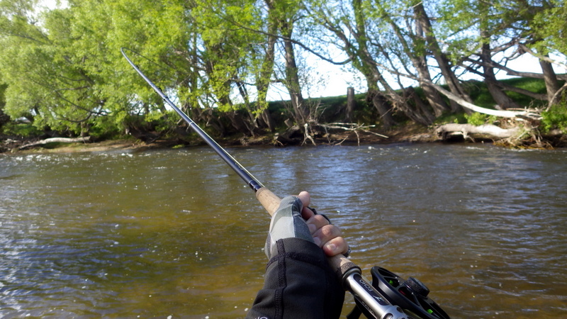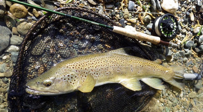 Fly Fishing 2015/10/27 The Stimulator actually stimulates fish 先週月曜日のホームリバー釣行から5日後。 24日、土曜日についに水位がMedian Levelをわずかながら下回った。 ごれで完全にGoサインですね。 こうして後日になって見てみると、25日の釣行中に微妙に上昇して、再びほんの少しラインの上の水位になっていましたが、釣りが出来るコンディションです。 というわけで、今週は日曜日は迷わずホームリバー中流域。月曜日は今シーズン解禁から釣っている川に行きたかったんですが、今週月曜日はLabor Dayという日本で言う勤労感謝の日のようなパブリックホリデイがらみのロングウイークエンド。 祭日のあの川は、また先週のように4WDを河原に乗り入れたり、遊びに来る人も多そうだからちょっとやめておこう。 なので、釣れても、釣れなくても、ようやく今シーズン初めてフィッシャブルなコンディションになったホームリバーを2日間じっくり釣りこんでみようというプランにした。 Dunedinを出た時は雨が降っていたが、ホームリバーに近づく頃には晴れ間が。 よしよし、これなら気持ちよく釣りが出来そうだぞ~ 風が吹いているけど、先週の強風に比べれば全然まし。 ところがスタートしてすぐにトラブル発生。 SAGE VXP 590-4が折れた~~ しかもロールキャストも放った時に、あっけなくポキッと... 最初は継ぎ目がスッポ抜けたのかと思ったら、そうじゃなかった。 あ~あ~~、でもそろそろ折れそうな気がしていたのも事実。 実は、今シーズンのファーストフィッシュを6wtのLOOP EVOTECで釣った後、こっちもティップがあっけなく折れてしまった。 LOOPは昨シーズンにも11月に折れてしまって、修理にかなり時間がかかったので、途中でECHO CARBONをバックアップ用に買ったものの、重くてあまり気に入らず、結局SAGE VXP 590で6wtのライン、SCOTT G2 905で5wtのラインを投げてシーズンを乗り切った。 たぶん、昨シーズン釣った魚の70%くらいはVXPだったし、今シーズンもまたLOOPが折れたので、2匹目以降はまたVXPで、かなりデカイ魚を取っている。もう毎回フルベンド。 今年で4シーズン目になるこのロッド、シーズン中どこかで折れそうな気がしていたのだが、こんなに早く逝ってしまうとは。。 というわけで、現在LOOPとSAGEの2本が戦線離脱中... 仕方なく、スペアロッドを取りに車に戻って、 今日はこの6wtのECHOで。再スタートです。 そして直後にニンフでファーストフィッシュがきた。 45cmくらいのまあまあサイズ。 幸先のいいスタートだと思ったのだが。。 最初の魚以降、全く反応が得られない。 らしきスポットがことごとく沈黙。 先行者の足跡も。でもこれ今日じゃないなあ。。車は見かけなかったし。 この川の静まり具合は、先行者のプレッシャーどうこうではなく、魚が動いていないように感じる。 移動しよう。 昨シーズン、さんざん釣り込んだ大好きなストレッチ。 またここにこれてうれしい。 冬場の増水時に、いい感じに流れに横たわってたレイダウンが流されてしまったようだけど。 ここを渡る時に、久々に沈しました!(笑) ウェーディングスタッフ持っているんですが、持ち歩くのが面倒であまり使わない。 その辺に転がってる、適当な枯れ枝を拾って、渡り終わったら捨てちゃうほうが身軽なので。 夏場にいつもヒョイヒョイ渡ってたところだし、ちょっと水が多くて流れ強いけど何とかいけるだろうなんて。 渡ってる途中で枝に体重掛けたらバキッと折れて、半流され気味で胸から水入りました。 結局何とか渡ったけど、ウェ-ディングベルトに挿してたカメラの三脚がなくなってた(泣) うわ~、なんか今日さんざんだな~ 車に下着、ソックスの替えは積んであるので、戻って着替えて、ウェーダーの水抜いて。 フリースのパンツは濡れてるけど、とりあえず再開。 ドライ&ニンフで打ちまくって、50cmくらいのがようやくきたけど、ネットに入れる寸前でポロッと外れた。 最後は去年もよく釣ったこの岩のポイントで。 ニンフで小さそうなのバラシて、ドライにも1発出たけどしっかり掛らなかった。 う~ん、キビシイなあ。。 とりあえず日帰りで帰宅して、 月曜日の朝、性懲りもなくまた同じ川へ(笑) 今シーズン初の5wtラインの登場。今日はG2でいってみよう。 今日はちゃんとウェーディングスタッフも持って、渡渉は慎重にと。 昨日はやっていないセクションに入って釣ってみる。 しかし、前日同様、川はいたって静かで魚の反応なし。 午前中ノーフィッシュ。 久しぶりに穏やかな晴天なのはいいんだけど、魚が。。出ない。 昼過ぎになって、ようやくこの日1本目の魚。 35cmくらいのカワイイやつだけど。 この時間帯になって、ようやく魚が動き始めたのか、この後ミニブラウンが2本掛った。 なんか今ひとつだな~ と思っていると、ピックアップの時に水面をチョコチョコ引っ張られているドライを追ってきて、食い損なったブラウンがいた。 ここでふと思い出した。 そういえば去年もこの川で、エルクヘアカディスを