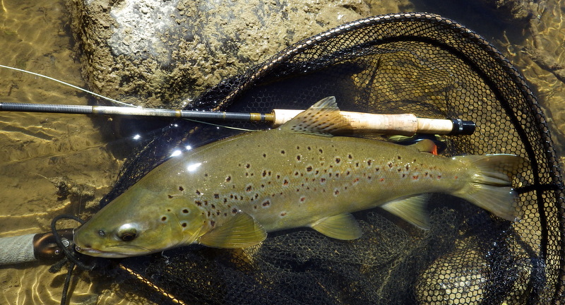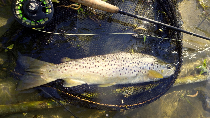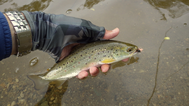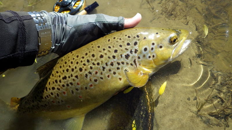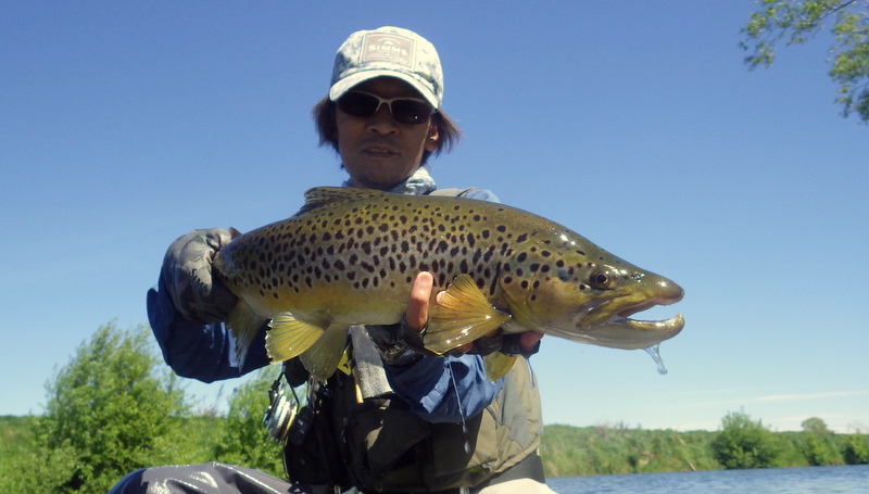 Fly Fishing 2015/11/03 Lovely Weekend with Sunshine and Fish 先週の釣行で沈したので、久しぶりにベストを空にして洗濯した。 これが自分のベストの中身のすべて。 多いか少ないかはよくわかりませんが、これらをすべて収納するとベストはかなり重くなります。 フライボックスはニンフ用、小さめのドライ用、大きいサイズのドライ用とシンプルに計3個です。 今週末は日曜日、月曜日共に晴天の予報。 まずは日曜日の朝、再びホームリバー中流域へ。 朝一は先週沈したポイントからスタート。 川の水位はかなり下がって、ようやく釣りにはいい感じになってきた。 この水位なら、先週ここで失くしてしまったカメラの三脚が見つけられるんじゃないかと思って、まずここに来たんだけど。。 残念ながら発見できず。 たぶんもうチョイ下手のまだ水深が残ってる辺りだな。 あきらめて新しいの買うか。 釣りはスロースタートでしたが、予想通りに日が上がって、川面に太陽光が射し始める10時半頃にファーストフィッシュ。 いきなりまあまあのサイズで、元気にジャ-ンプ! 全部で4回ほど飛んだけど、ちょうどカメラを構えた時に飛んでくれて、偶然これが撮れた。 ちょっと光って見にくいけど、拡大すると魚が空中に写ってます。 45cmくらいのヤツですね。ナイスファイターで引き強かった。 太いもんなあ。いい色してるね~。 ここは昨シーズン中、毎回必ず魚が出たキースポットの1つ。 やはり今年も魚ストックしてます。これは43cmくらい。 ねばっているともう1発きたっ! デカそうだ。 ようやく出た~。今シーズン初のホームリバーでのグッドサイズ。 54cmだけど太いので4.5lb近くある。 今日は天気も良いし、魚もでかくてキレイで最高だあ~ 何だかうれし~い いい季節になってきたなぁ。。 この後40-43cmくらいの2本と1バラシでトータル5キャッチで終了。今日は先週とは違ってすべてニンフで。 まだそんなにポンポン釣れるわけじゃないけど、先週よりは明らかに上向いてきたといっていいだろう。まだ中型の魚が中心だけど、動き出したのを感じる。 さらにもう少し水位が下がればベストコンディションといったところか。それ以上下がるといわゆる夏の渇水期となってきびしくなる。 そして月曜日。 さあ、どこへ行こうか? 解禁から最初の2週を釣ったビッグフィッシュリバーに戻ろうかと考えていたが、その川はすっかり水位が下がってしまって早くも渇水状態。 行って見ないことにはわからないけど、かなりシビアなサイトフィッシングが要求されるだろう。 去年のこの時期にメインで釣ったもう1本のサイトフィッシングリバーはこの川より手前にある。 今シーズン最初の日曜日に行ったけど、暴風で釣りにならなかったので、今シーズンはまだこっちの川では魚を釣っていない。 よし、今日は手前の川からやって、状況が良ければそのまま続行。ダメなら厳しいのは覚悟の上で奥のビッグフィッシュリバーというプランで行ってみよう。 行きます! でもゆっくり10時半スタートだけど(笑)。 去年もよく釣ったサイトで狙う川。ウィードパッチの生育が去年より若干早いかなあ? 魚はポツポツ見えるけどそんなに多くはない。 さあ、今年はどうなんだこの川は? 2本くらい浮き気味にクルーズしているヤツにアプローチしてみたが食わない。 ん~、難しいなあ。。 ちょっと場所を変えようかと考えながら、エントリーポイントの橋のほうへ戻ると、背が黒っぽく見えるいいサイズを発見。 しばらく観察すると、かなり岸よりのウィードの上を泳いでいるのでニンフがウィードに入って隠れてしまいそうだ。 ウィードの切れ目に差し掛かったときに上手く食わせるしかないなあ。。 タイミングを計って、ブラウンがウィードの切れ目の方に向かうのに合わせてドライ&ニンフを投入。 フライがいい位置にポンと入って、それに気付くとちょっと加速して真っ直ぐフライに向かって行き、あっさり口を使った。 決まったーー! けっこうデカイよ、コレ! 捕獲で~す。 今シーズン、この川では初の魚だ。ちょうど60cm、ウェイトはもうちょっとで5lb。 完璧な魚体ですね。 この川のブラウンらしい、大きくはっきりしたスポットとなんともいえない茶色のトーン。 よしよし、とりあえず捕ったぞ~。 次はエントリーポイントの橋より下流ををチェック。 そして2本目をフックアップ! またいいサイズだけど、さっきのよりちょっと小さいか? ちょっと細めだけどいい魚。59cmあった。4lb越えです。 きれいな黄緑っぽい背中のトーンです。 よ~し、いい感じにのってきたぞ~ まだ昼過ぎだけど、もう今日はこの川だけでいいな。 この川の別のポイントもまだあるし。 車で移動して、少し上流の別の橋に向かいます。 ー 続く ― PR