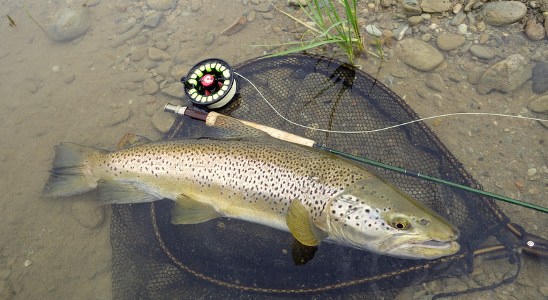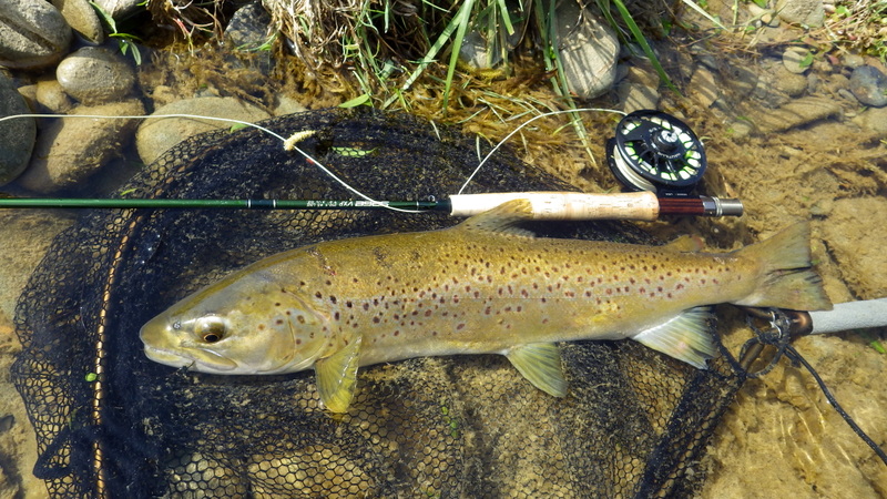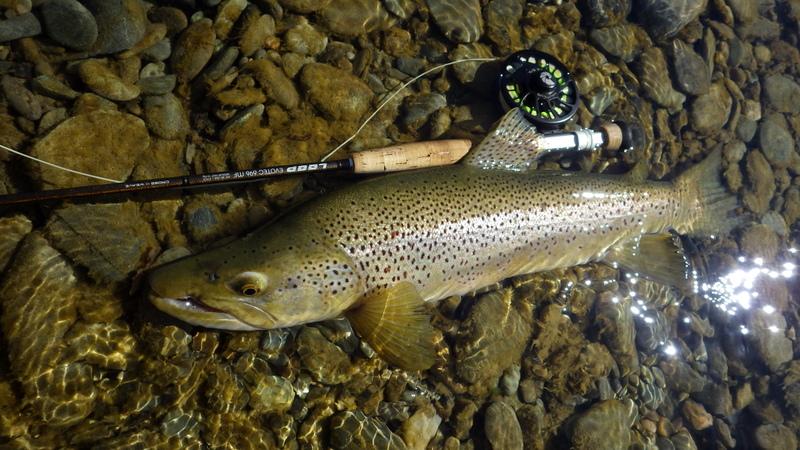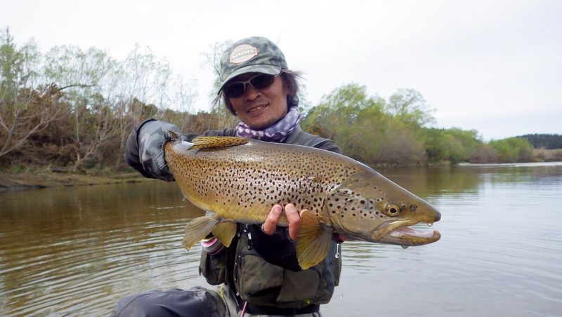 Fly Fishing 2015/10/06 New Season Kick-off! いよいよ始まりました~ 新しい2015-2016シーズン!! 今年は去年より南方面の川の水位が低く、10月1日に釣りに行けたアングラーは釣りになった様子。自分は10月4日の日曜日まで待たなくてはならず、川の水位をウォッチングしながらもどかしい3日間を過ごした。 そして残念ながら、日曜日は風速100km/h越えの恐ろしい強風が吹く予報。 日本では風速はm/sでいいますが、こっちではkm/hなんです。たぶんm/sにすると風速20-25m程度と同じかと思います。 初めは日曜日はDunedinより南方面の川に行って、月曜日は近場の北方面への釣行を考えていましたが、この分だと日曜日は行っても風で釣りにならないかもしれない。なのでいろいろ考えた結果、ガソリンが無駄にならないように逆に日曜日は近場の北方面に様子見で行って、月曜日に南に向かって本当の解禁って感じにしてみようということに。 そしてやって来ました日曜日。 川に到着した段階ではまだそこまでの風ではなく、初めの1時間くらいは釣りが出来た。 しかし去年より見える魚が全然少ない。 1匹見つけただけ。 そうこうしているうちに、予報どおりに風が強くなってきて。。 きた~~、とんでもない強風。 自分が立っているのも大変なくらい。 何もそんなに予報どおりに吹かなくても。。 退散してもう1本別の川に。 こっちでも状況は同じ。 風が収まる気配はない。 ダメだこりゃ。。 釣りに行ったら、どんなにタフな日であってもあまり早上がりとかしないタイプなんですが、さすがに今日はムリ。 午後2時で終了。 明日、明日。 明日南へ行こう。 ところがこの日の晩に南のリバーフローをチェックすると、なんと無情にも水位が急上昇。 Mataura Riverでも70cumecs以下だったのが一気に90cumecs近くまで上がっているじゃないか!! Dunedinは風は酷かったけど、天気は良かった。 南は風プラス雨だったのか? こうなると南方面の川はすべてあやしい。コレは去年の教訓。 なんだよ~、まいったなあ~~ こりゃ自分の解禁は来週末かい?(涙) 夜通し風が吹き荒れていて、もう準備もろくにせずにふて寝です。 翌月曜日の朝。 仕事に行くぐらいの時間にゆっくり起きると風は収まっていて天気も良い。 ん~~、これなら行きたいなあ。。 でも南の川は濁っている可能性が高いからなあ。 昨日見た北方面の川にもう1度出直す?? でも魚あんまりいなかったしなあ。。 昨日行った2本の川よりさらに北に、昨シーズン中に行こう行こうと思いながら、結局行かずに終わってしまった気になっている川が1本ある。 天気もいいことだし、ダメもとでもいいからドライブがてらその川でも見に行ってみるか? 今後のために見ておくのは無駄にはならないだろう。 よし、今日のプラン決定です。 Dunedinから1時間強。大した距離じゃないです。 10時くらいに到着。初めての川だけど、すぐに川へのアクセスも見つかった。 けっこうクリアーな水の、広い河原のいい感じの流れだ。 よしよし、穏やかで天気もいいし、気分も上がってきたぞー。 まずは常套手段のドライ&ニンフから。 #12アダムスパラシュートに約70cmのドロッパー。ニンフは#12フェザントテイルをセットアップ。 今シーズンのニューギア、NAUTILUS FWX5/6も満を持しての実戦投入。 今年6月に日本に帰国した際に、LOOP to LOOPさんのショーケースにひっそりたたずんでいたのを拉致ってきました。店主のY田さんいわく、ずいぶん前に仕入れたものということでしたが、ふとショーケースに目をやった時に「NZに連れて帰ってくれ~、仕事をさせてくれ~」って訴えていたようだったので(笑) 今日からしっかり仕事してもらいますから。 まあ昨日もちょっとだけやったけど、いよいよ今日がホントのスタートだ! エントリーポイントのすぐ上にあるドロップオフ。レイダウンがらみの対岸よりの深みはいかにもといった雰囲気たっぷり。 まずはここからだなあ。 絶対魚が着いていそうなスポットだ。 少し下の方から流し始めて、7~8投目で本命と思われるレイダウンの横を流す。 すると。。 ドライが水中に引き込まれた! きたっ!! やっぱりいたっ!! しかもデカイ! ニューシーズンのファーストフィッシュ!! いきなり6lb、65cm。ハンプバックがカッコイイ、ナイスジャック! この川いい魚いるじゃない。 よっしゃー、いいスタートだあ!! よし次。 浅いランの川底もストーキングしながら遡行していきますが、魚の姿は見えない。 今日はたぶんさっき釣れたような落ち込み下の深みだろう。 こういうタイプのスポットを重点的に攻めていく。 それでもいないところにはいない。 落ち込み下の深みであっても、流れがありすぎるところはダメな気がする。 十分な深さがあって、かつ流れがゆるいところ。 そういう条件を満たすスポットはそんなに多くはないけれど、頑張って距離を歩いて、そういう場所に出くわすと、 やっぱり答えが返ってくる。そんな感じ。 この日2本目は4lb、56cmのヘン。 ニンフは昨シーズン中に考案して、シー